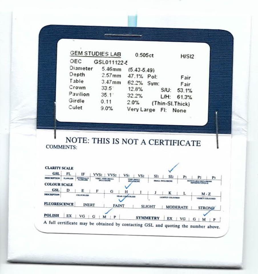 A loose round old cut Diamond of 0.51ct (With GSL memo graded as H SI2 #GSL011122-5). (Pre-owned)