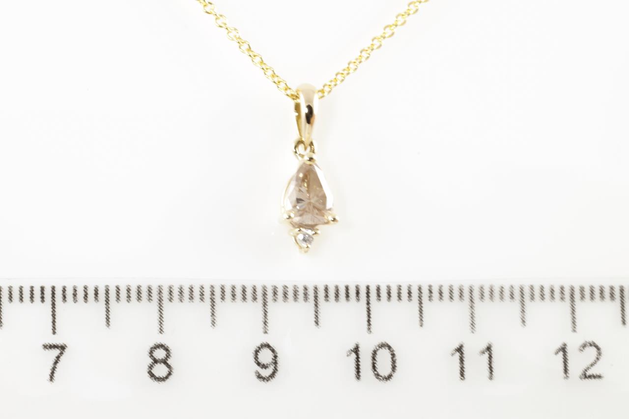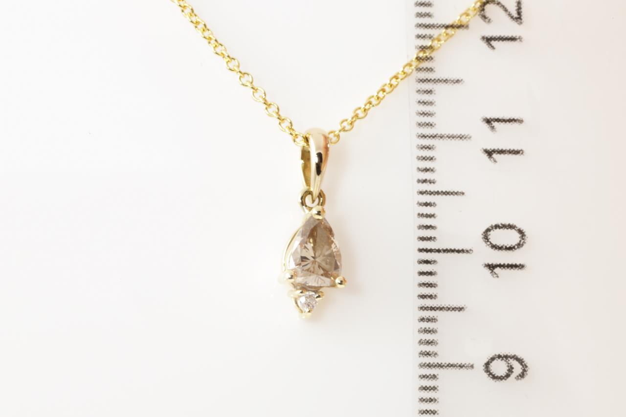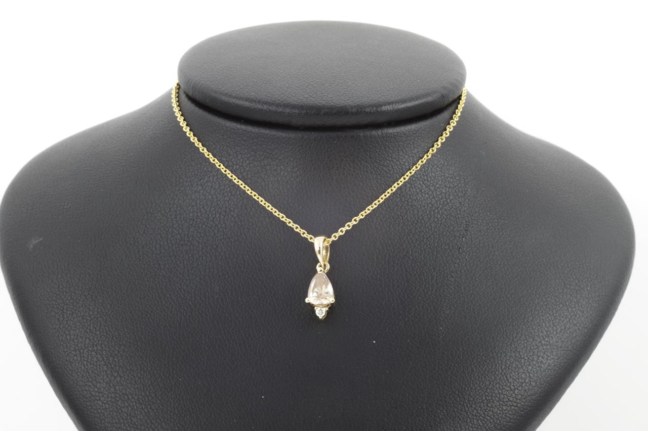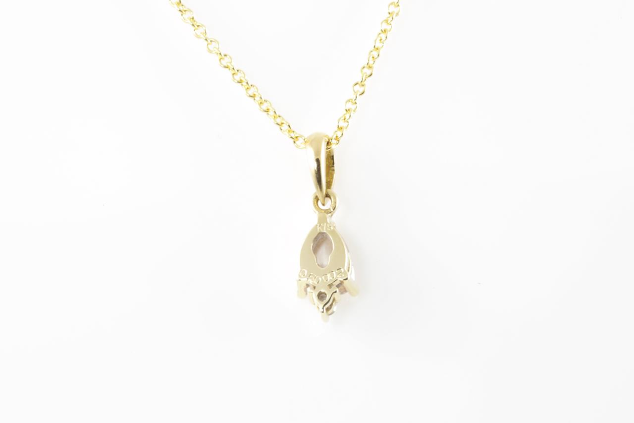 Diamond pendant with a pear shape Diamond of 0.50ct (Estimated grading: SI1) and round Diamond of 0.02ct. 18ct yellow gold with 18ct yellow gold 45cm chain. Weight: 3.0g (Pre-owned)