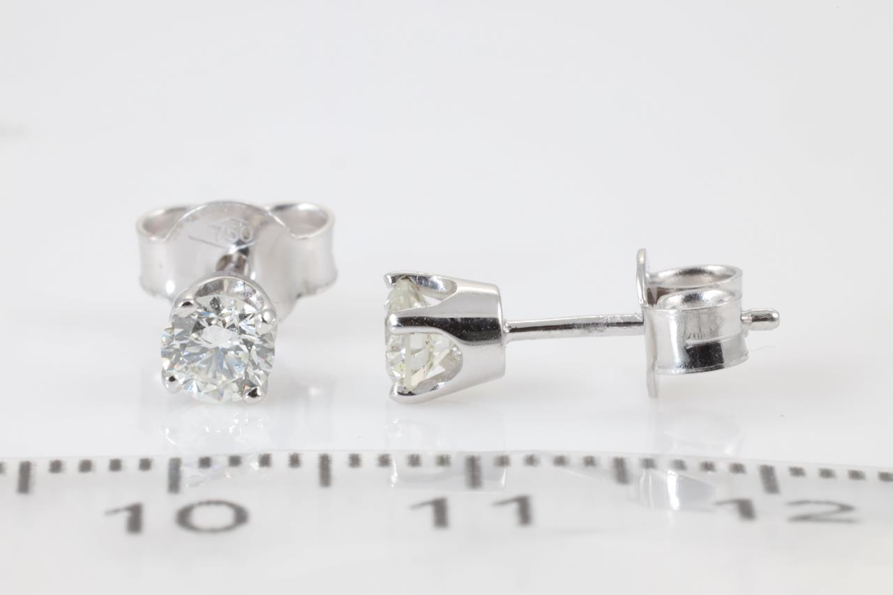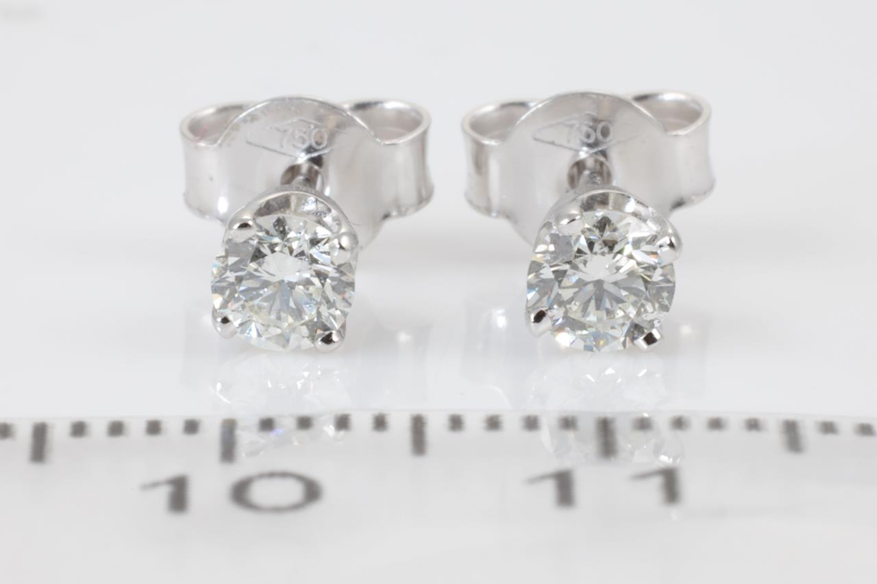 Diamond stud earrings with 2 round brilliant cut Diamonds totalling 0.52cts (Estimated grading: I-J SI). 18ct white gold. Weight: 1.2g. (New).