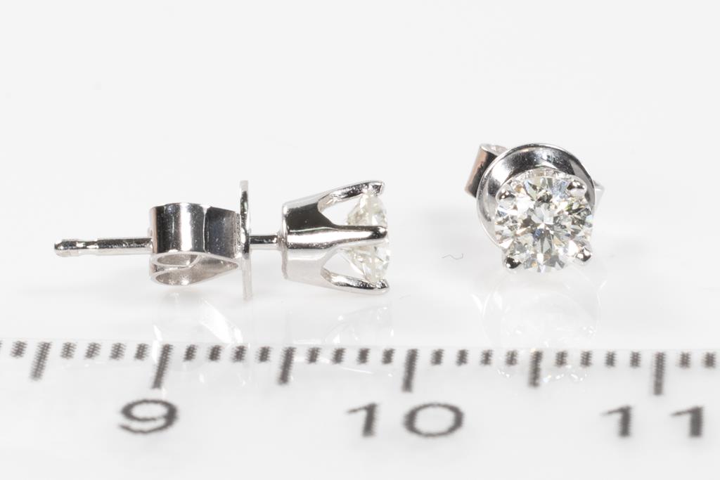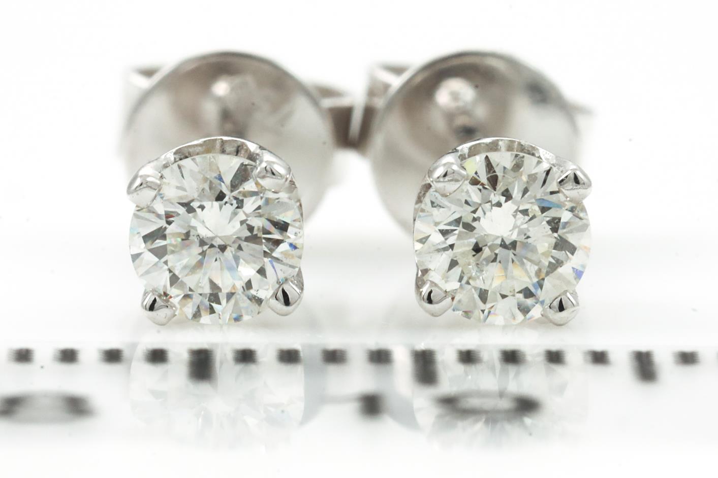 Diamond stud earrings with 2 round Diamonds totalling 0.52cts (Estimated grading: I-J VS-SI). 18ct white gold. Weight: 1.3g. (New)
