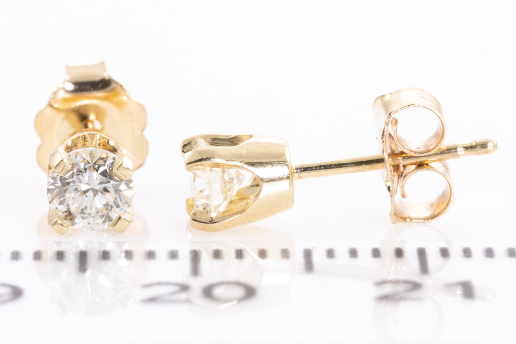 Diamond stud earrings with 2 round Diamonds totalling 0.52cts (Estimated grading: J P1). 18ct yellow gold. Weight: 1.1g. (New)