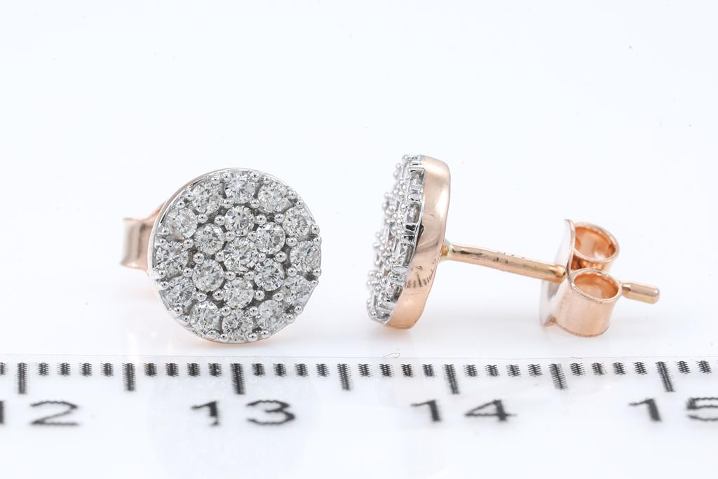 Diamond earrings with 38 round Diamonds totalling 0.53cts (Estimated grading: H SI). 14ct rose gold. Weight: 2.3g. (New)
