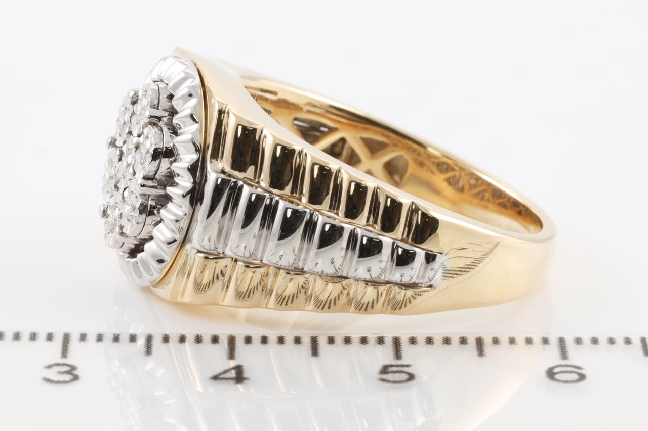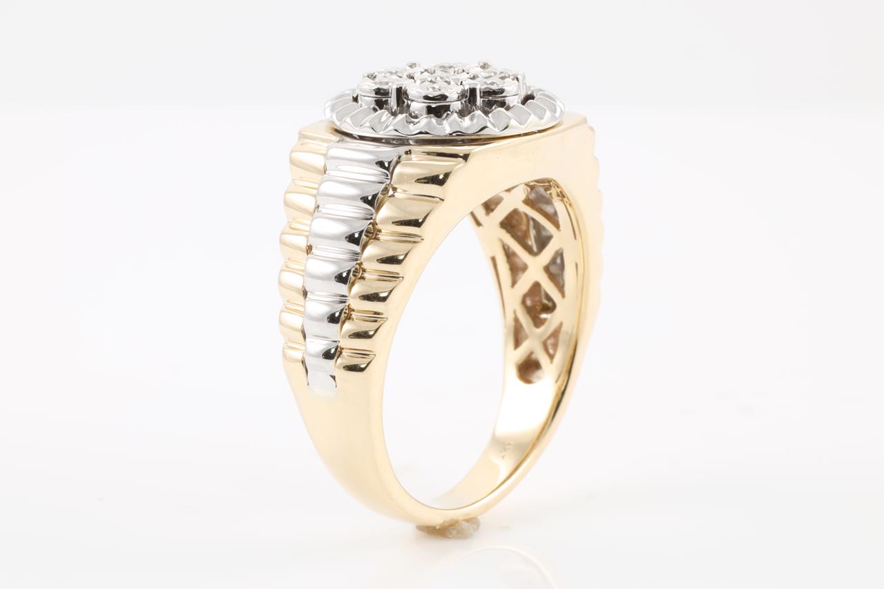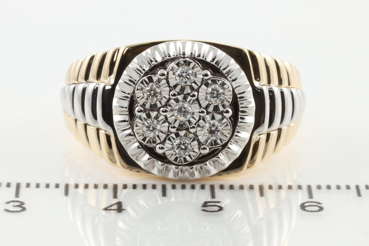Diamond Mens ring with round Diamonds totalling 0.18cts (Estimated grading: H-I SI). 9ct Yellow gold and White gold. Ring size V. Weight: 10.4g (New)
