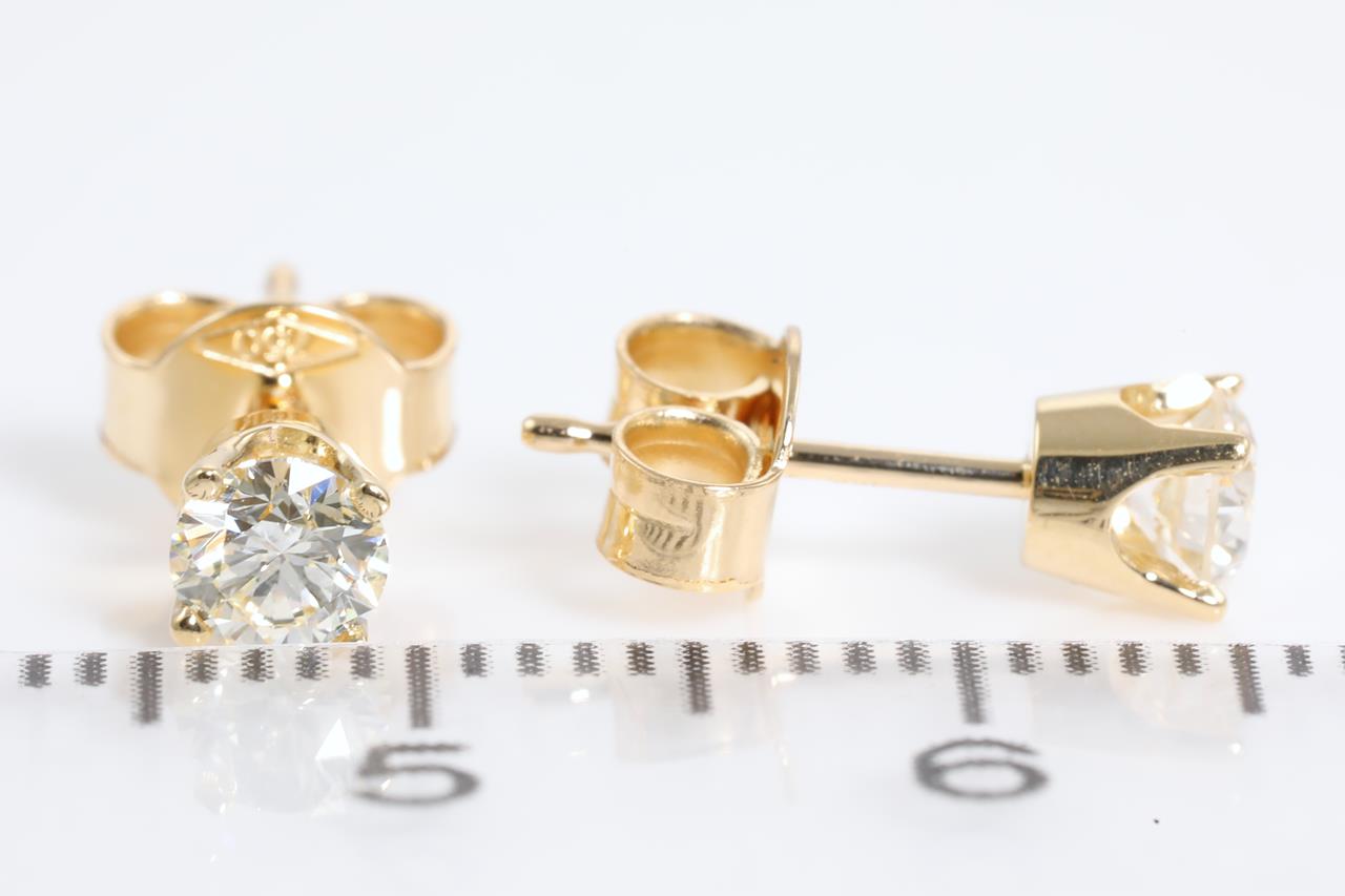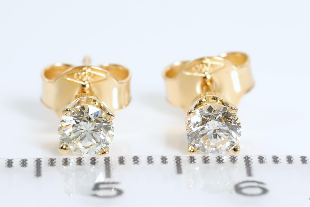 Diamond stud earrings with 2 round Diamonds totalling 0.53cts (Estimated grading: J VS). 18ct yellow gold. Weight: 1.4g. (New).