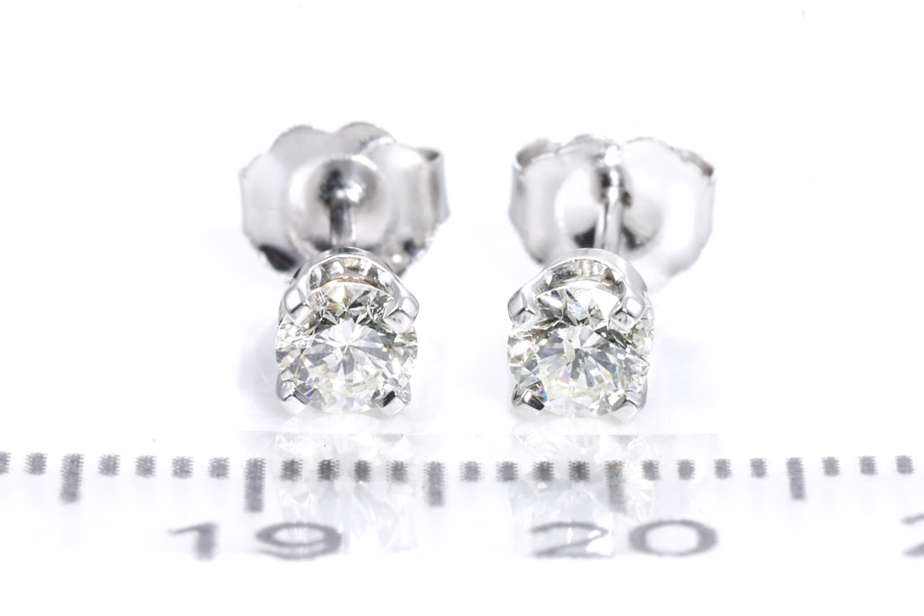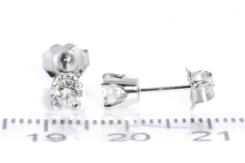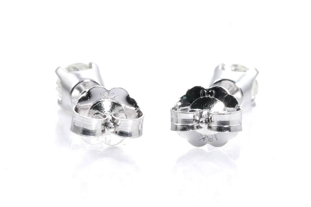 Diamond stud earrings with 2 round Diamonds totalling 0.53cts (Estimated grading: J P1). 18ct white gold. Weight: 1.1g. (New)