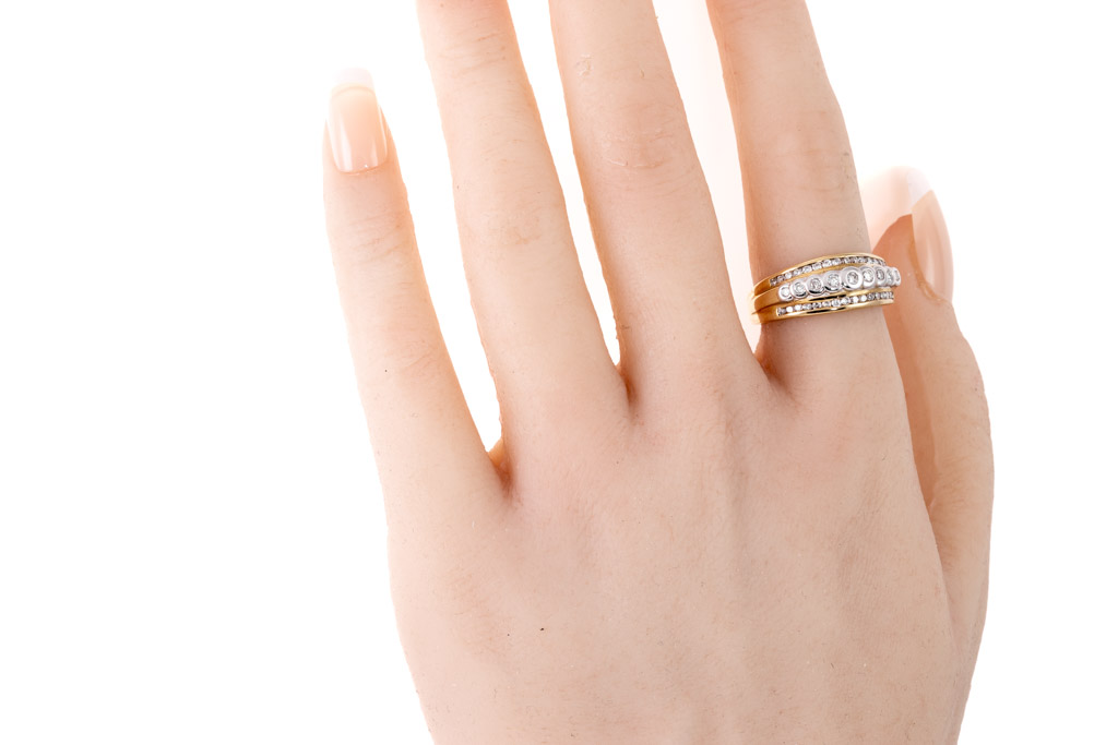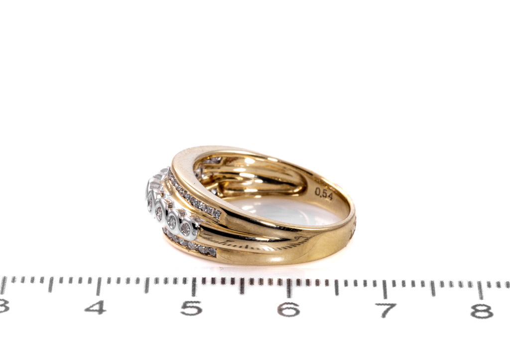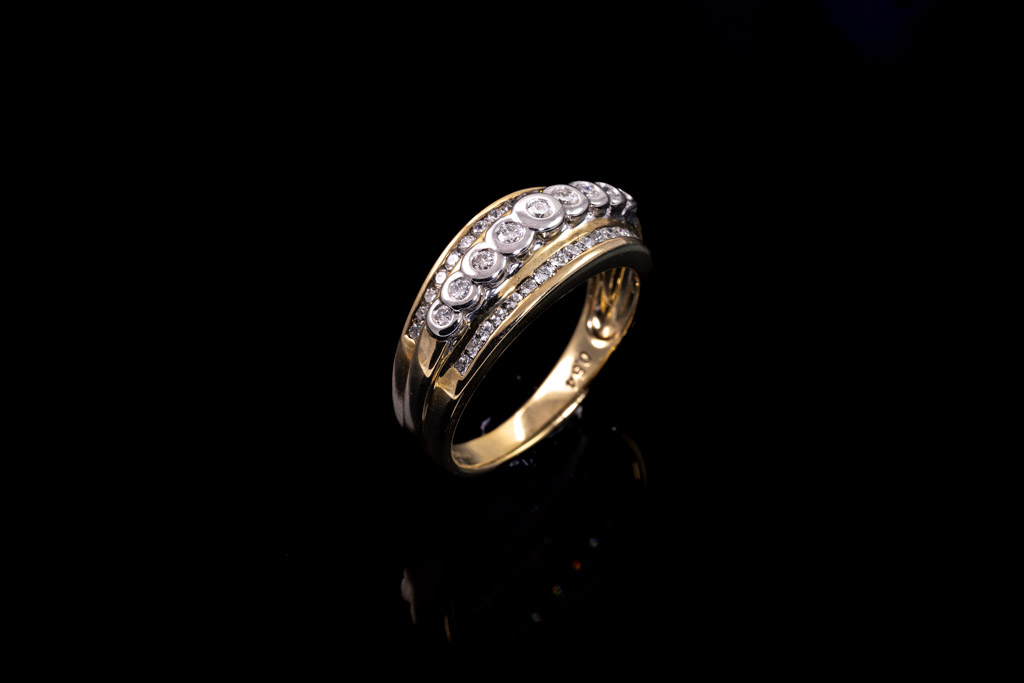 Diamond dress ring with round Diamonds totalling 0.54cts (Estimated grading: H SI-P1). 9ct yellow and white gold. Ring size N. Weight: 4.0g. With Valuation Certificate Ref# 032500317148. (Pre-owned)