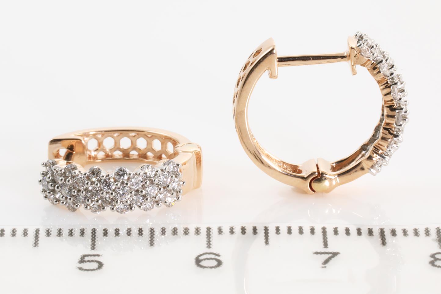 Diamond earrings with round Diamonds totalling 0.54cts (Estimated grading: H-I SI). 14ct Rose gold. Weight: 3.3g (New)