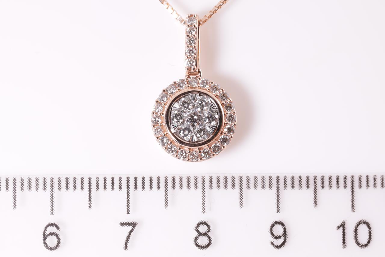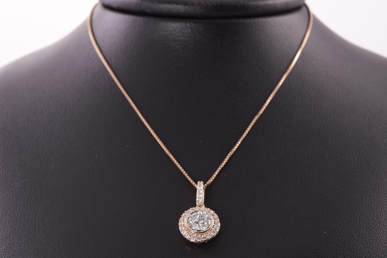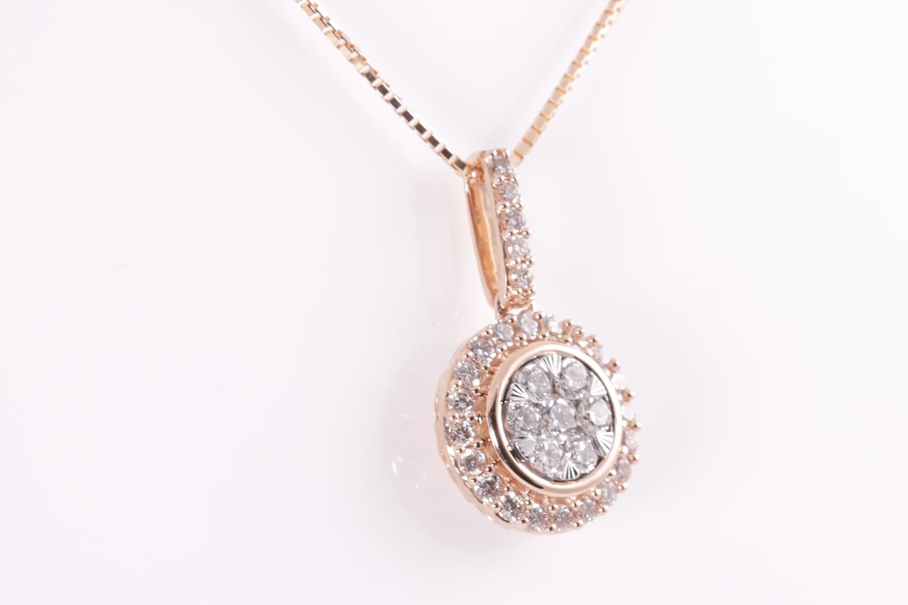 Diamond dress pendant with round Diamonds totalling 0.55cts (Estimated grading: H SI). 14ct rose and white gold with 18ct rose gold chain. Weight: 4.0g. (New)