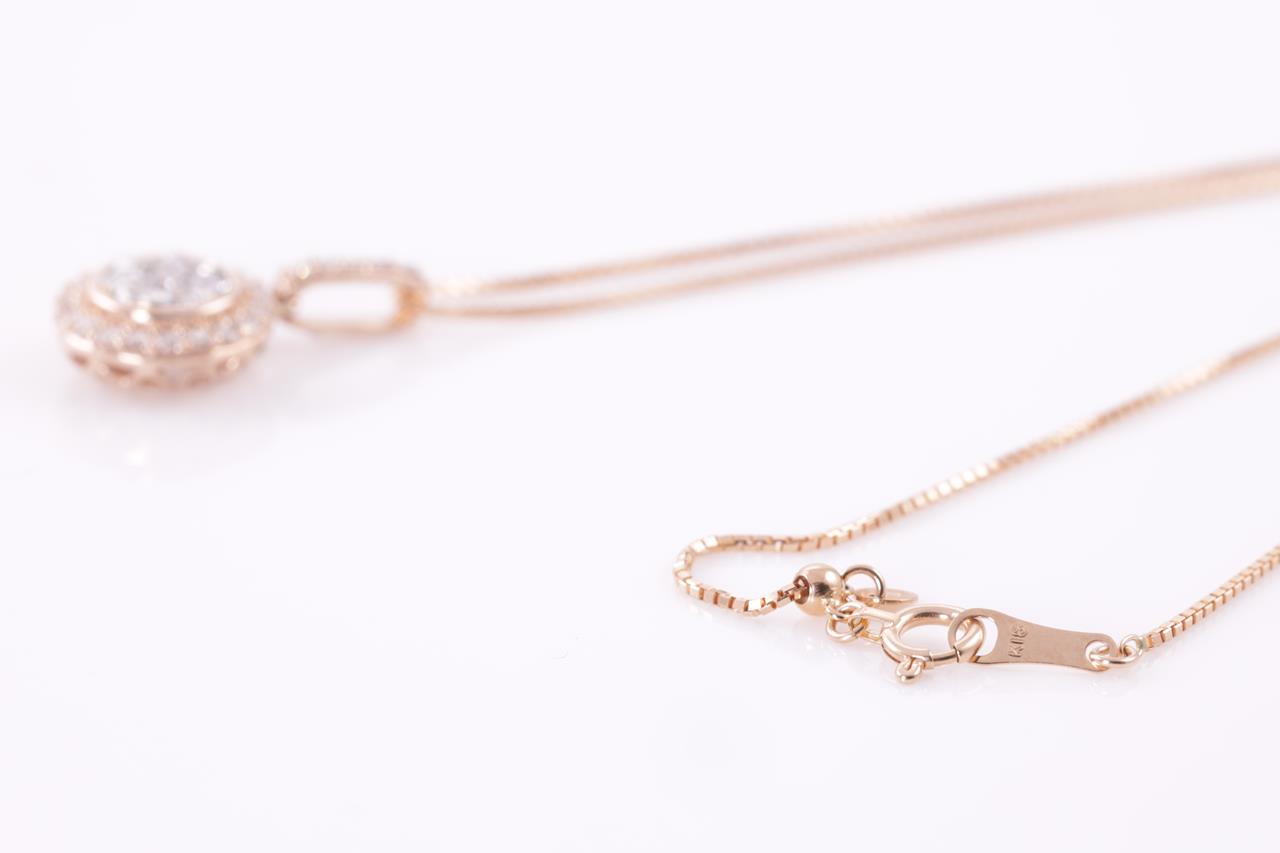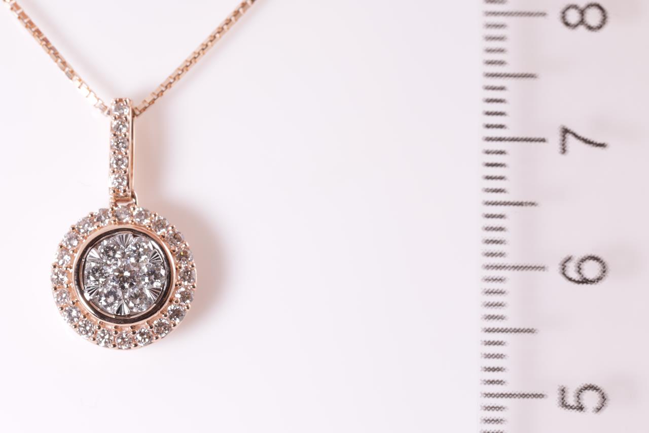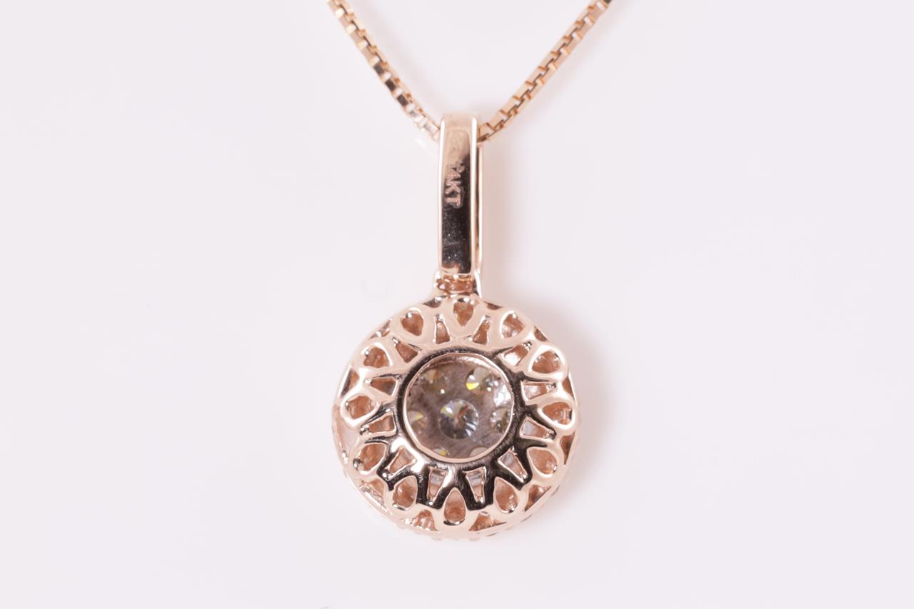 Diamond dress pendant with round Diamonds totalling 0.55cts (Estimated grading: H SI). 14ct rose and white gold with 18ct rose gold chain. Weight: 4.0g. (New)