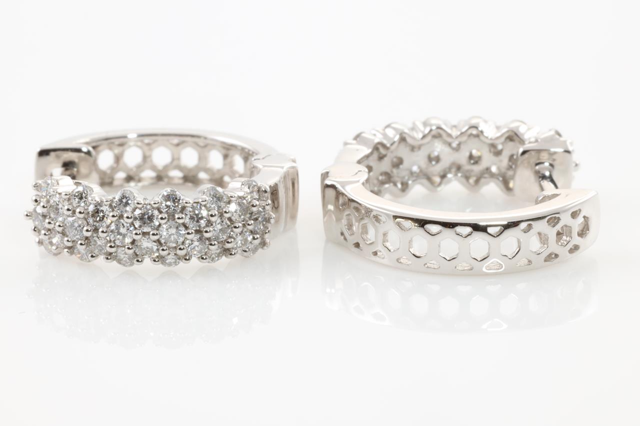 Diamond earrings with round Diamonds totalling 0.55cts (Estimated grading: H-I SI). 14ct White gold. Weight: 3.3g (New)