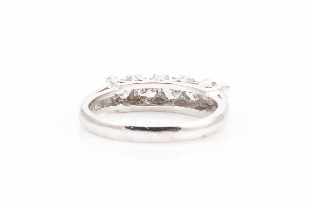 Diamond eternity ring with 5 round Diamonds totalling 0.55cts (Estimated grading: H SI). Platinum. Ring size M. Weight: 5.2g. (Pre-owned)
