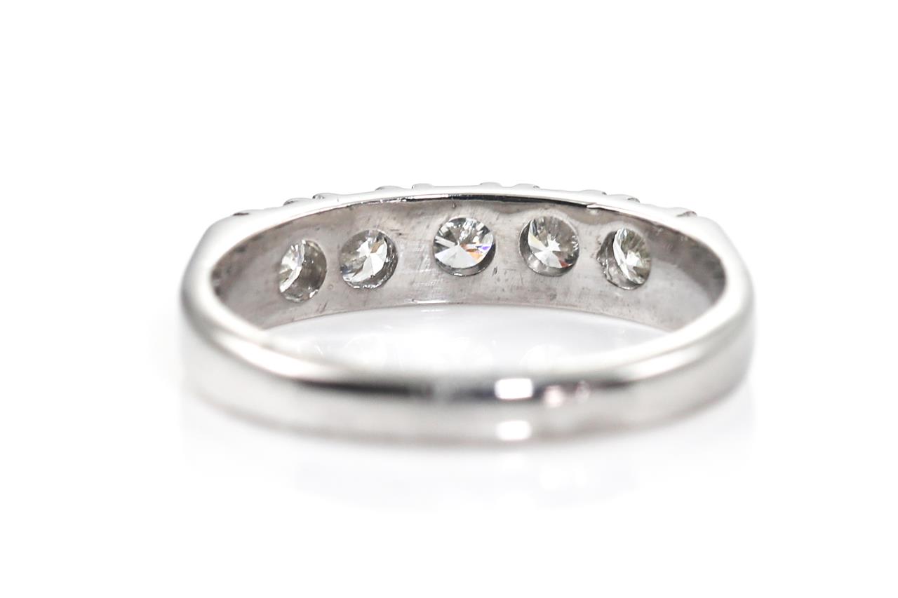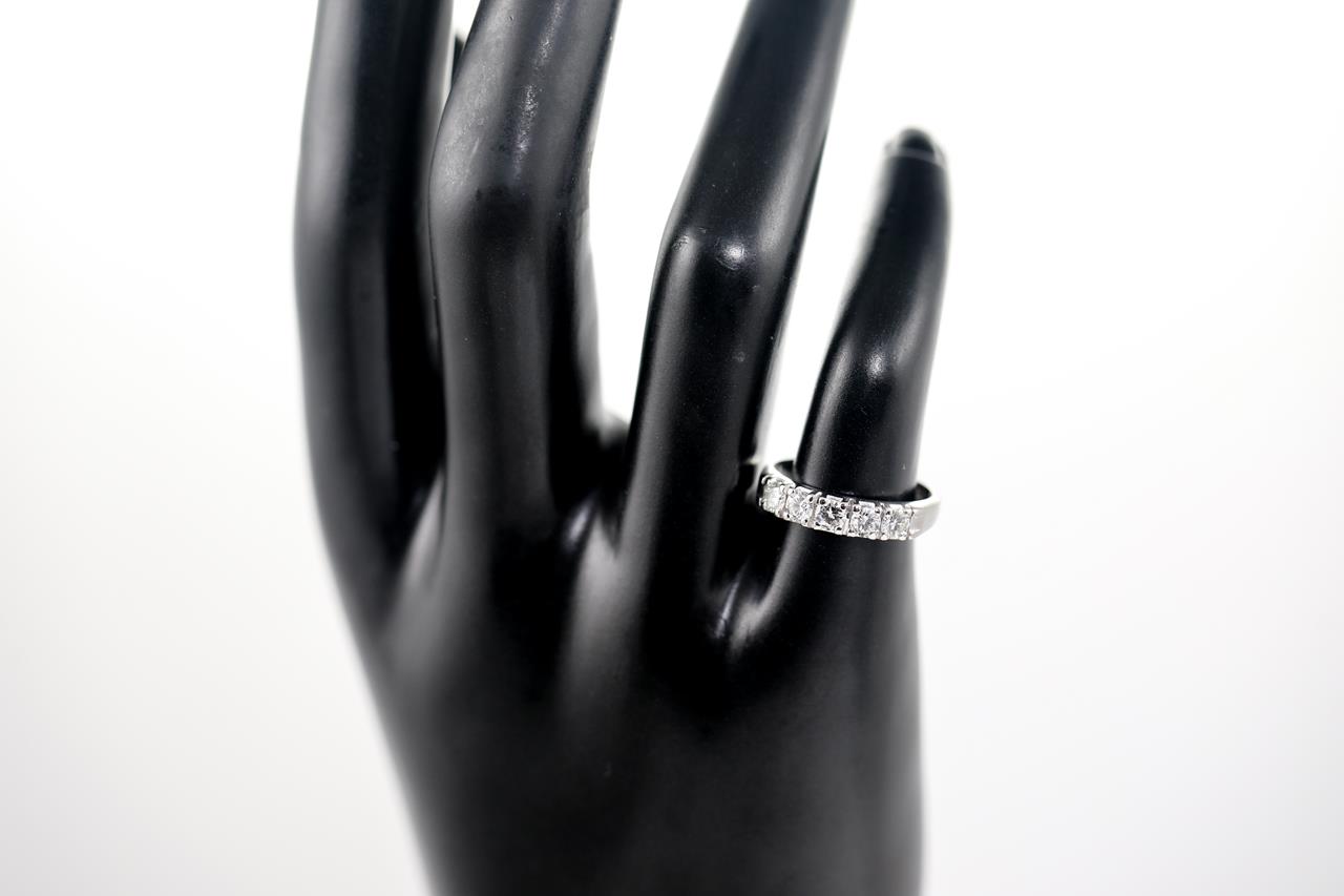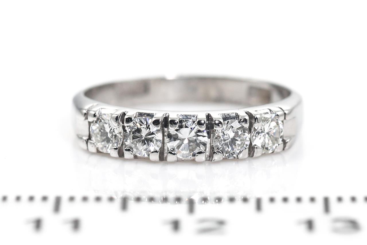 Eternity Diamond ring with 5 round Diamonds totalling approximately 0.55cts (Estimated grading E-F VS). 18ct white gold. Ring size J 1/2. Weight 3.2g. (Pre-owned)