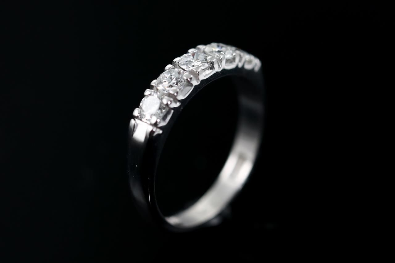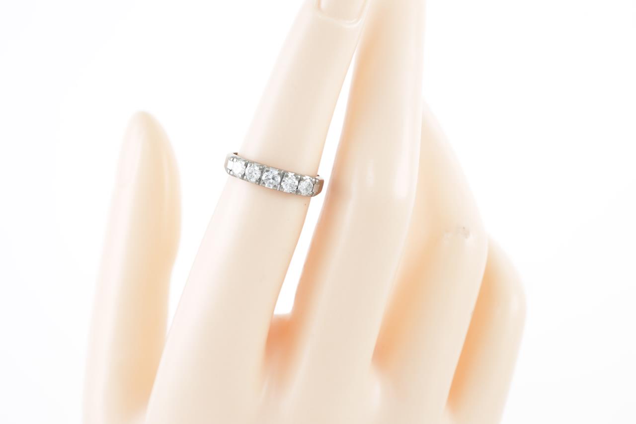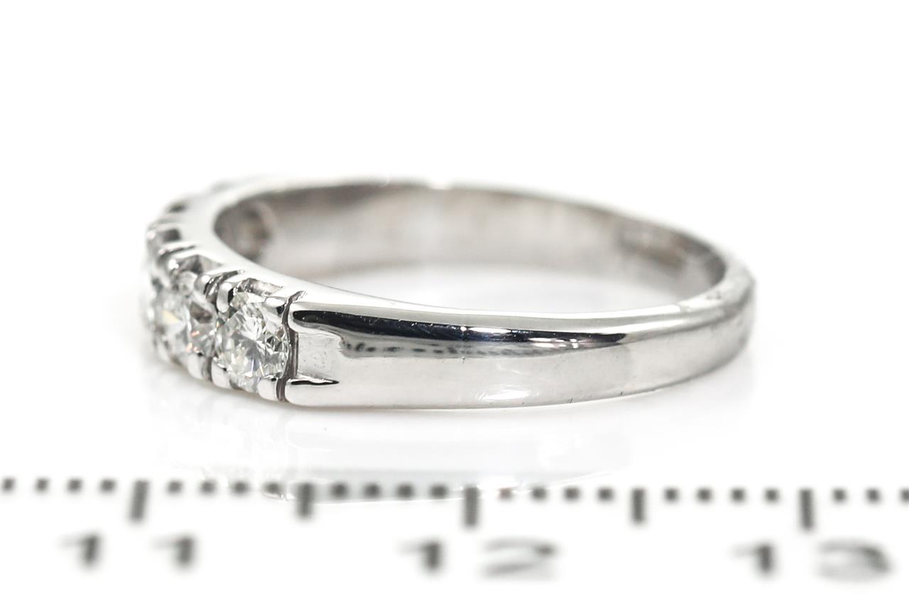 Eternity Diamond ring with 5 round Diamonds totalling approximately 0.55cts (Estimated grading E-F VS). 18ct white gold. Ring size J 1/2. Weight 3.2g. (Pre-owned)