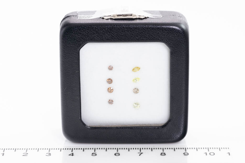 A parcel of loose round and marquise cut fancy colour Diamonds totalling 0.56cts (FSA estimated grading: Fancy Brownish Orange, Pink Champagne, Champagne and Fancy Yellow - Fancy Intensive Yellow P1-P2). Size: 2.1mm - 2.9mm (round), 2.1-3.9mm & 2.0-3.7mm (marquise). (New)