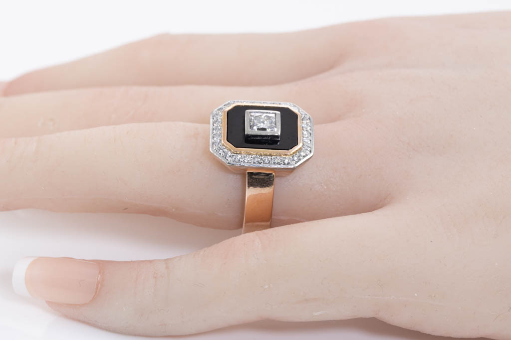 0.57ct Centre Diamond and Onyx Ring