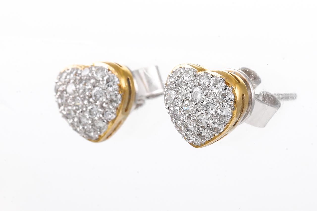 Diamond Earrings with round Diamonds totalling 0.57cts (Estimated grading: G SI). 18ct yellow & white gold. Weight: 2.9g (Pre-owned)