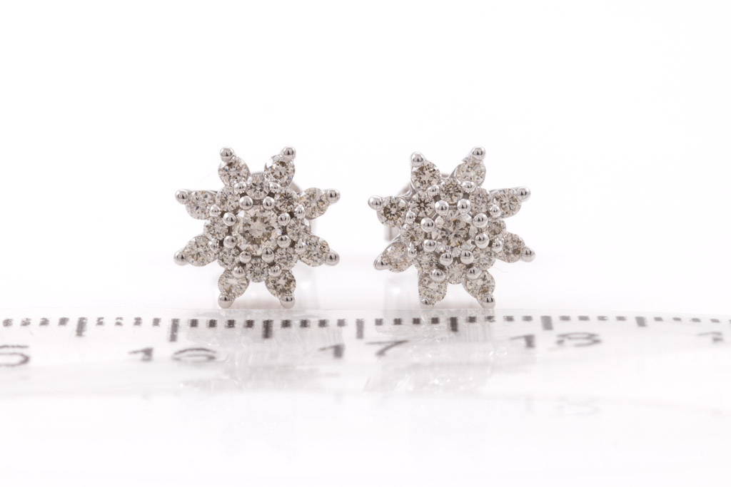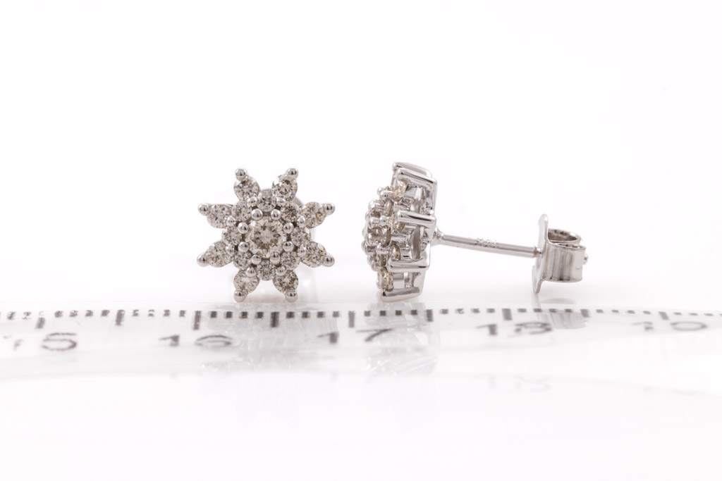 Diamond earrings with 34 round diamonds totalling 0.57cts. (Estimated grading: H SI). 14ct white gold. Weight: 2.1g. (New)