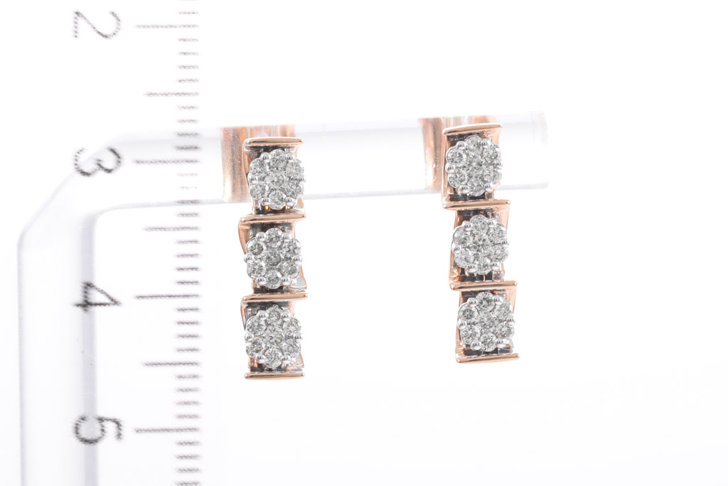 Diamond earrings with 42 round diamonds totalling 0.57cts. (Estimated grading: H SI). 14ct rose gold. Weight: 3g. (New)