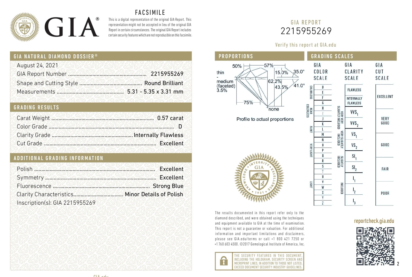 A loose round brilliant cut Diamond of 0.57ct (with GIA report graded as D IF #2215955269). (New)