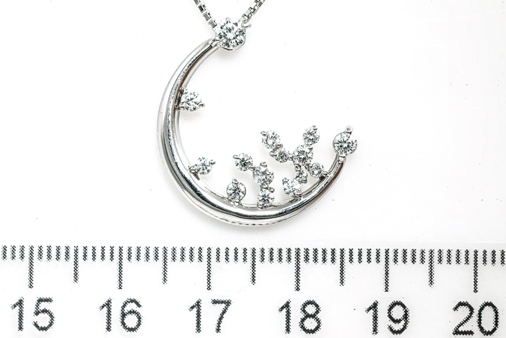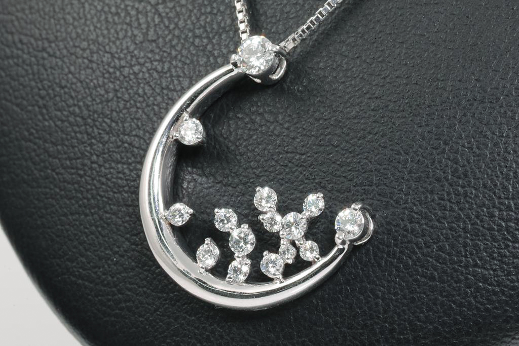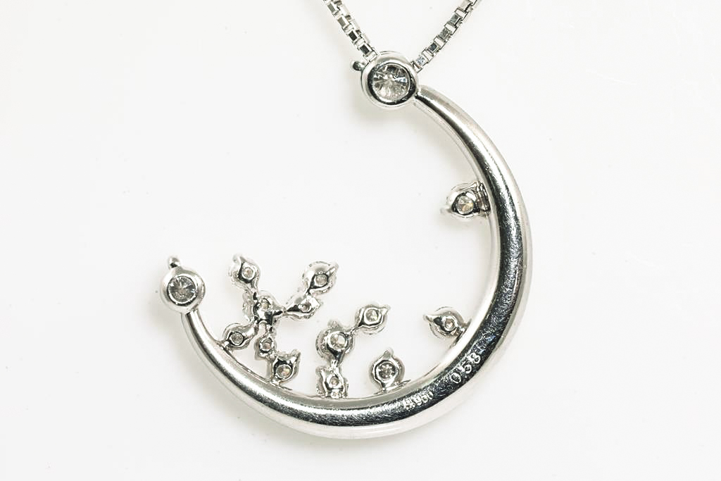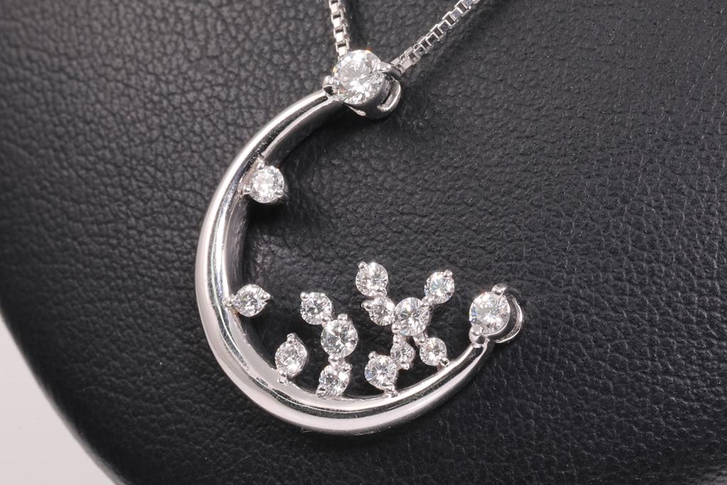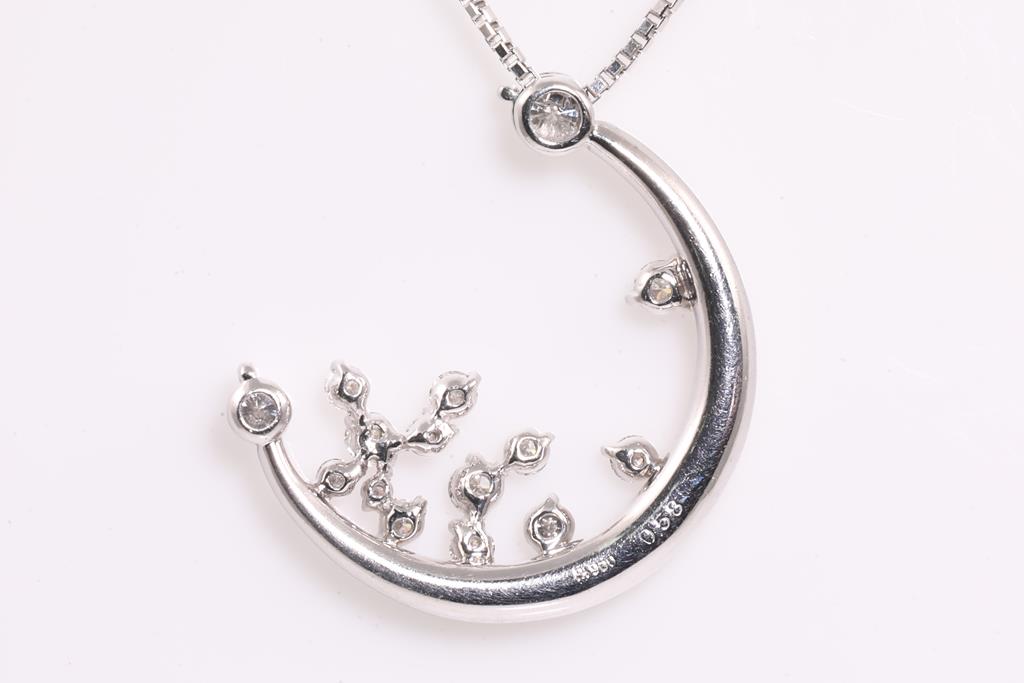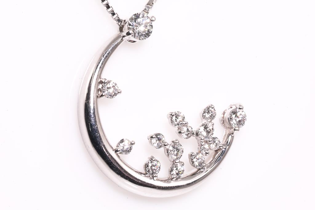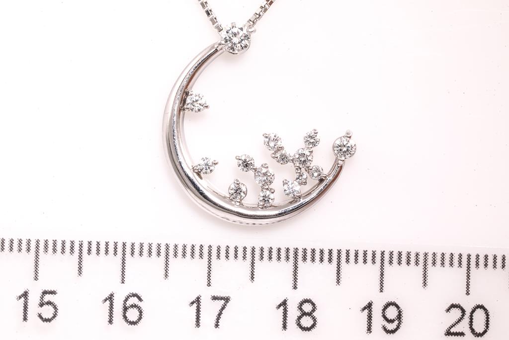 Diamond pendant with round Diamonds totalling 0.58cts (Estimated grading: F-G SI). Platinum with 40cm adjustable chain. Weight: 9g. (Pre-owned)