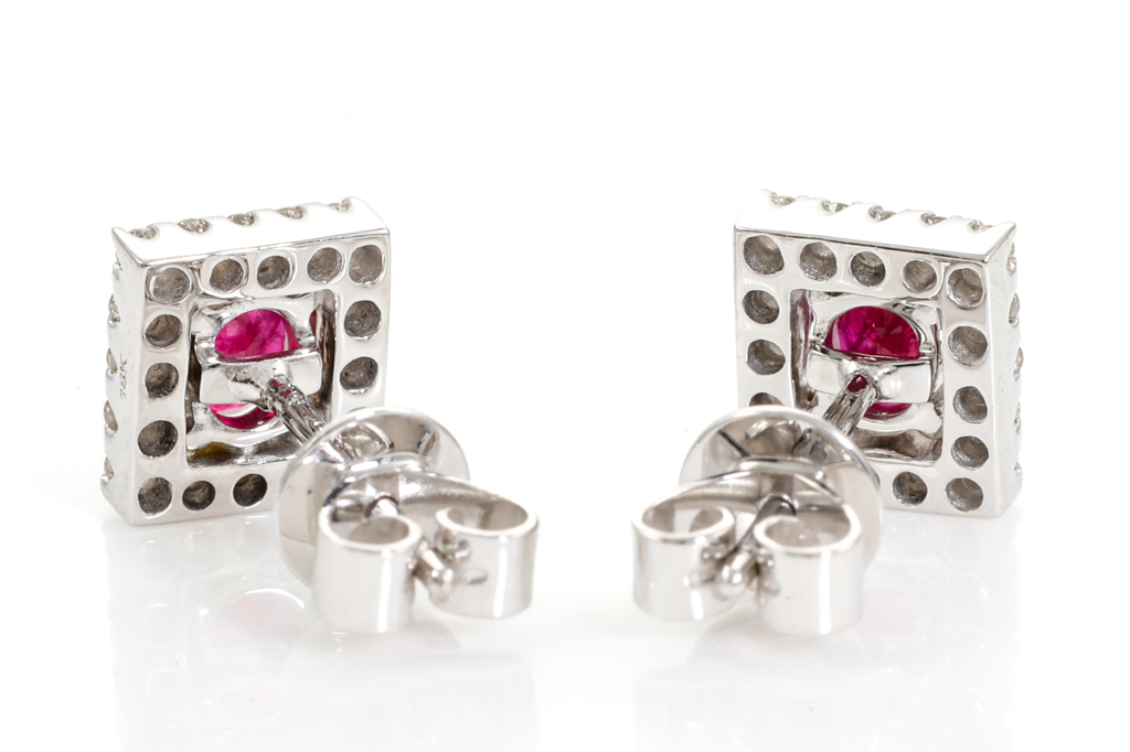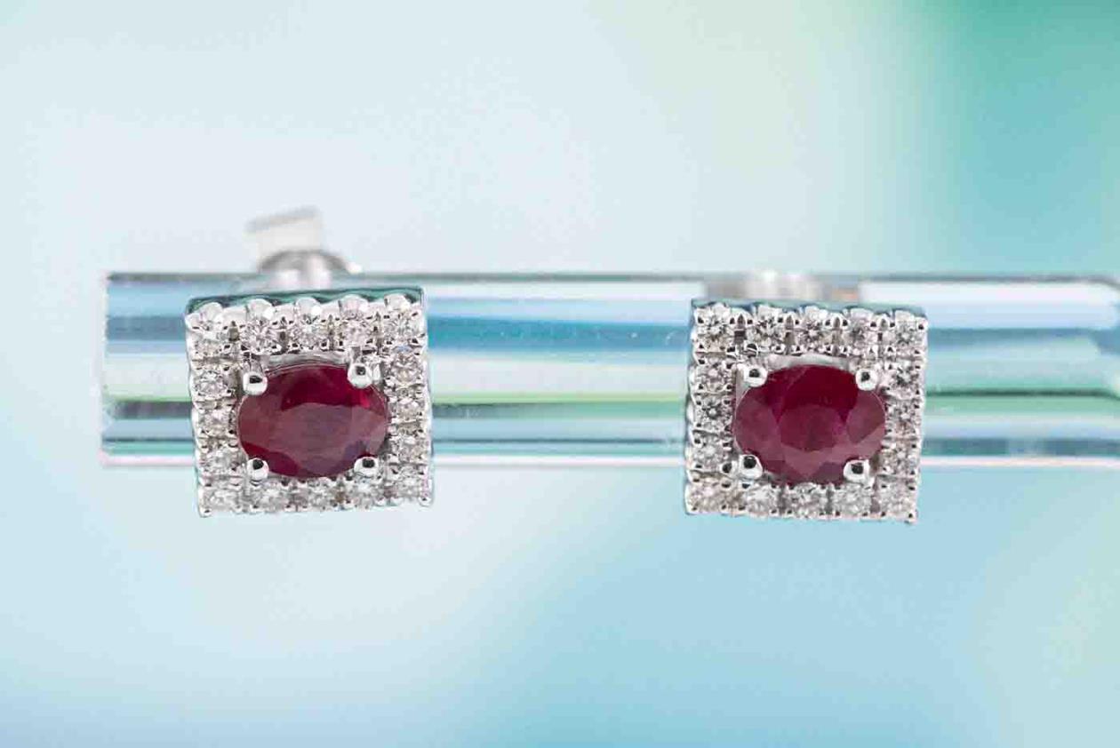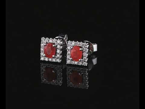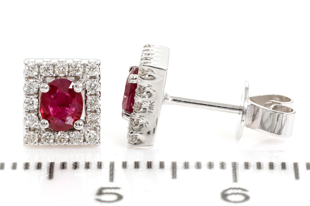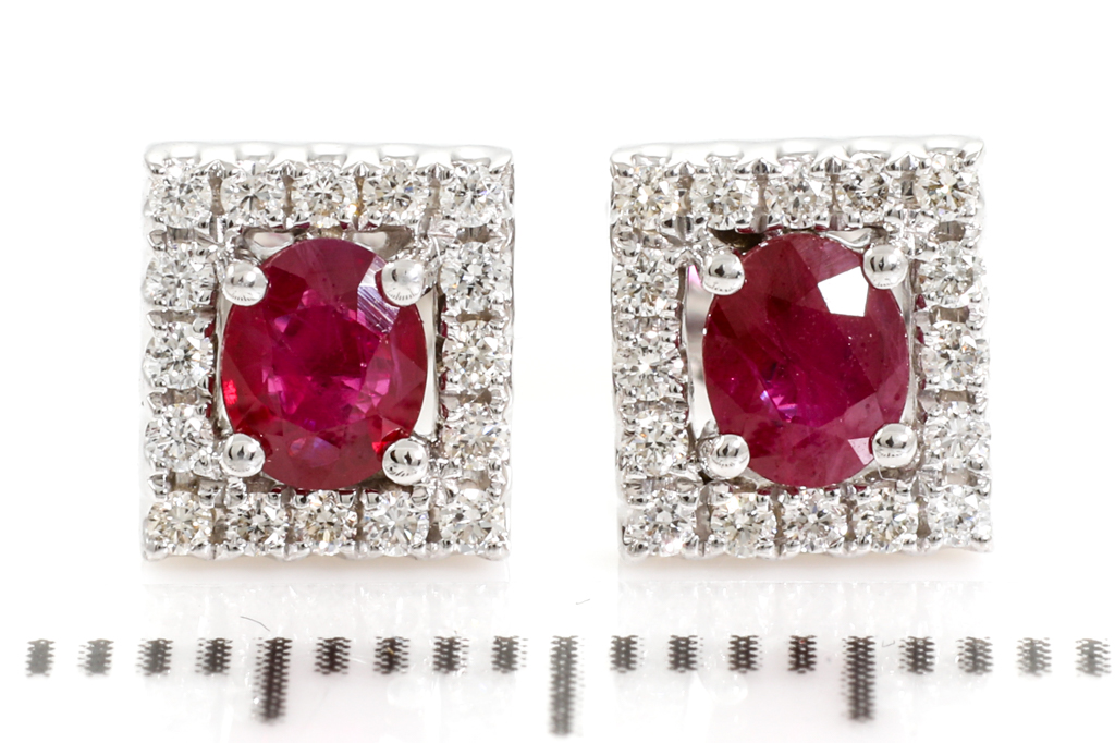 Ruby and Diamond earrings with oval shape Rubies totalling 0.58cts and Diamonds totalling 0.21cts. 18ct white gold with 18ct white gold backs. Weight: 2.5g. (New)