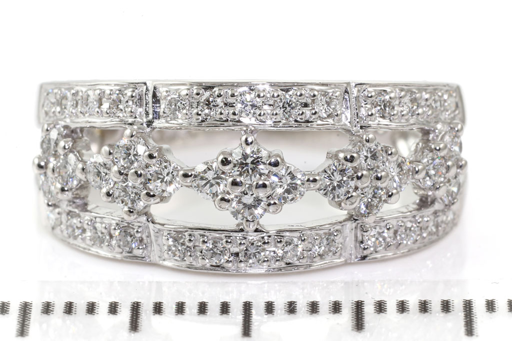 Diamond dress ring with round Diamonds totalling 0.59cts (Estimated grading: G-H SI). 18ct white gold. Ring size L. Weight: 4.9g (Pre-owned)