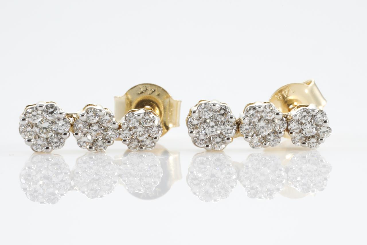 Diamond earrings with round Diamonds totalling 0.60cts (Estimated grading: H SI). 14ct yellow gold. Weight: 1.6g (New).