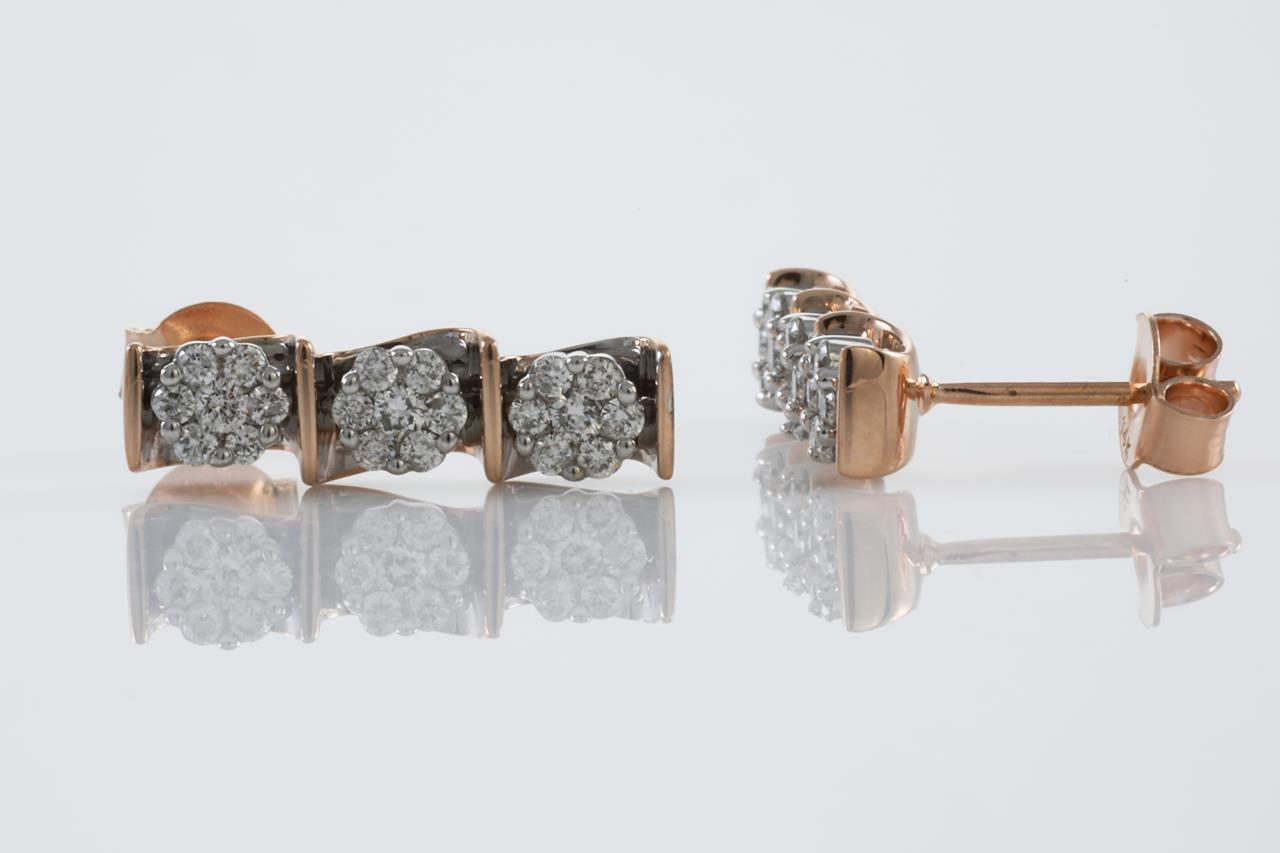 Diamond earrings with round Diamonds totalling 0.60cts (Estimated grading: H SI). 14 rose gold. Weight: 3.2g (New)