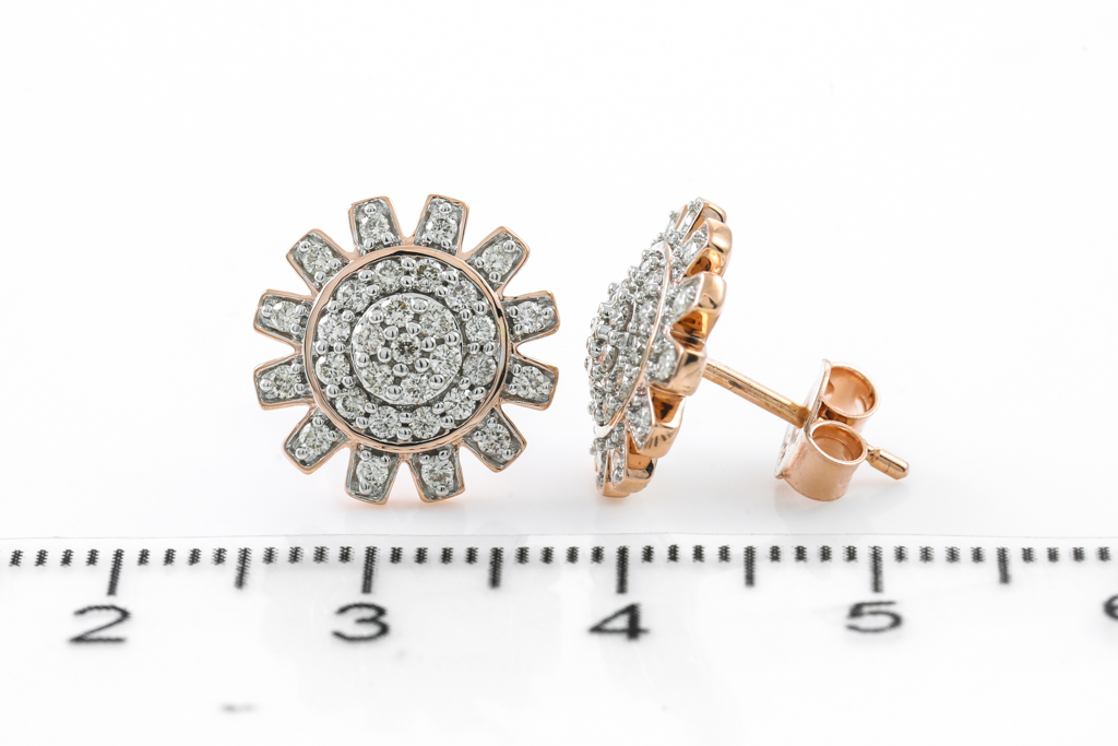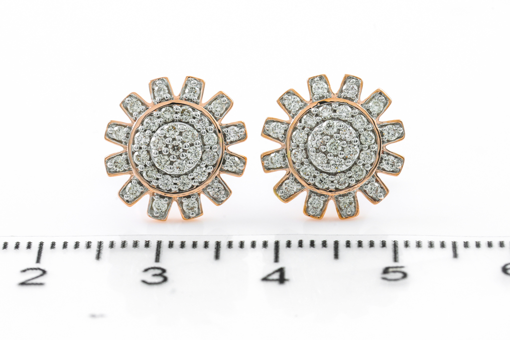 Diamond earrings with 62 round diamonds totalling 0.60cts. (Estimated grading: H SI). 14ct rose gold. Weight: 3.6g. (New)