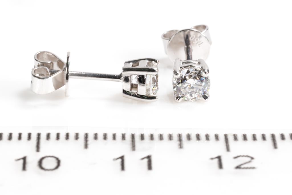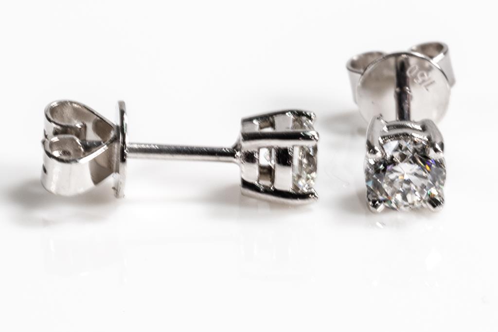 Diamond stud earrings with 2 round brilliant cut Diamonds totalling 0.60cts (both with GIA summary reports graded as E VS2 #2414857621, 6425080263). 18ct white gold. Weight 1.5g. (New)