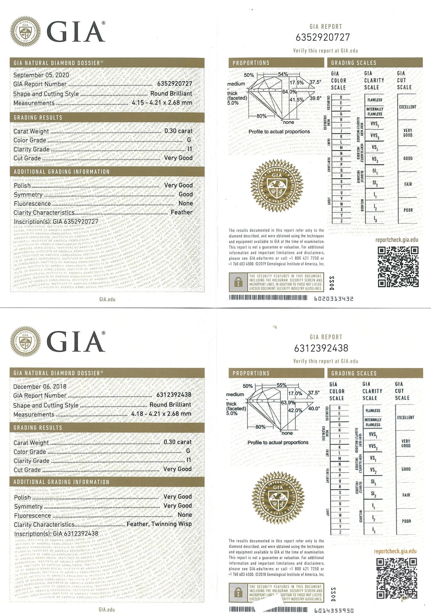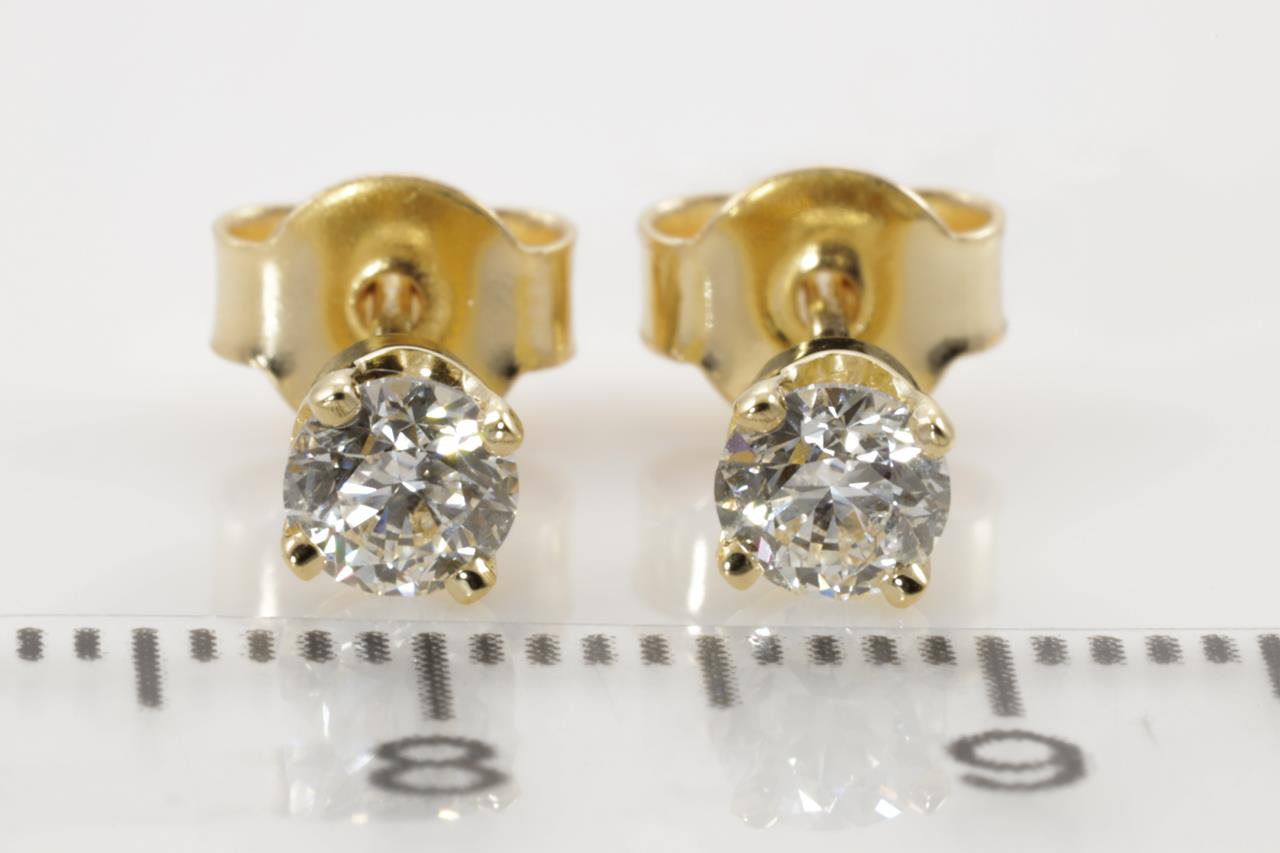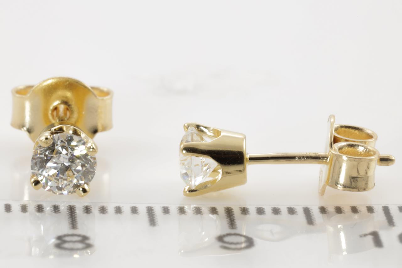 Diamond stud earring with 2 Round Brilliant Cut Diamonds totalling 0.60cts (with GIA report both graded as G P1 #6312392438, 6352920727) set in 18ct yellow gold. Weight: 1.3g. (New)