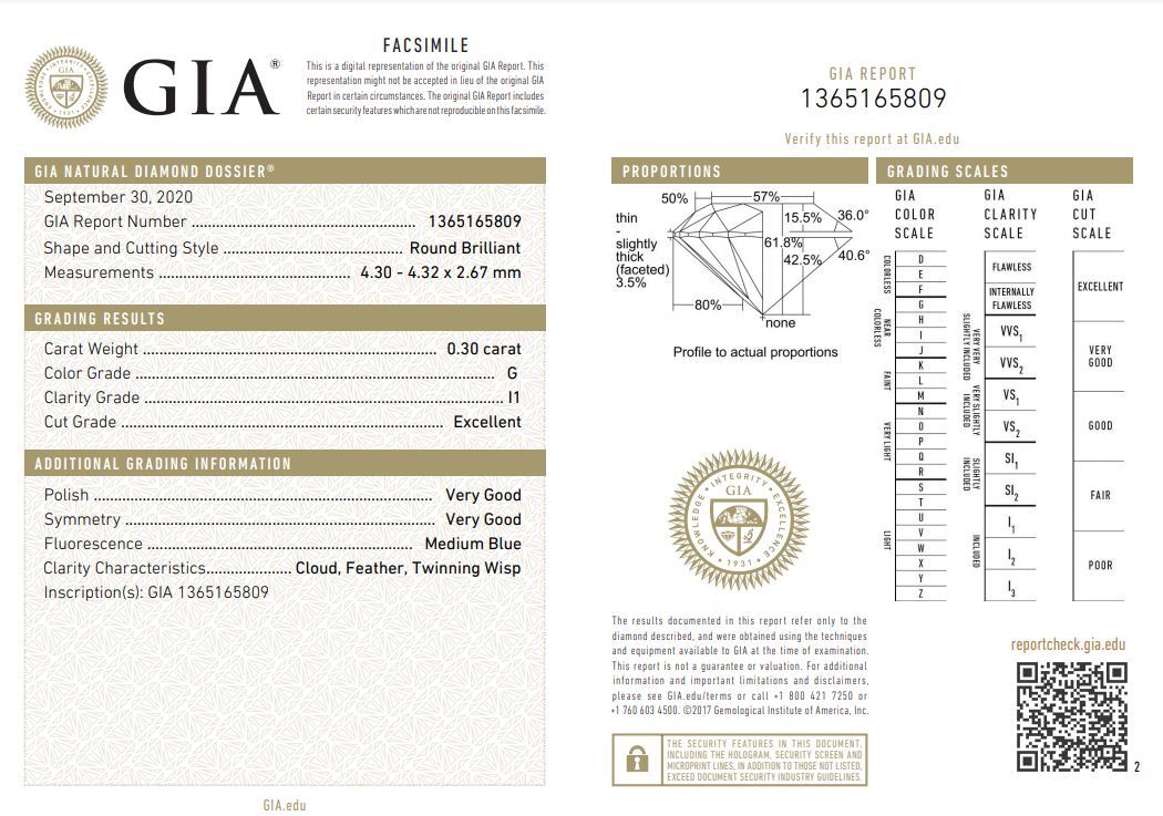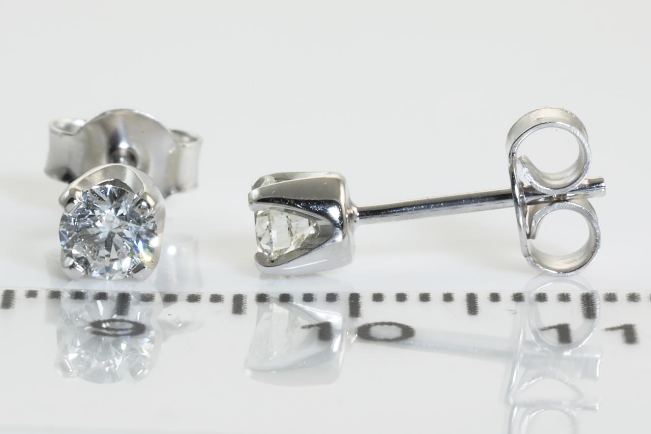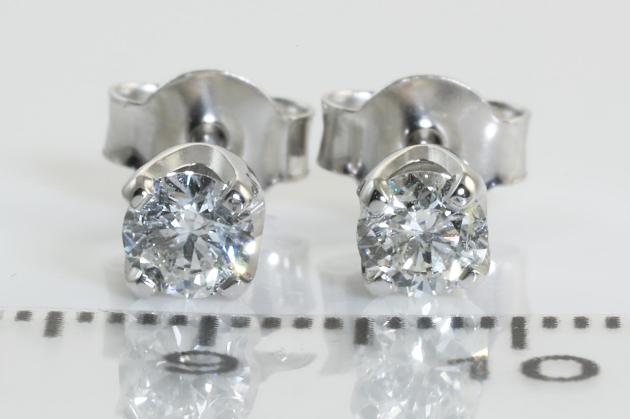 Diamond stud earrings with 2 round brilliant cut Diamonds totalling 0.60cts (with GIA reports graded as G P1 #1349890029, 1365165809). 18ct white gold. Weight: 1.6g. (New).