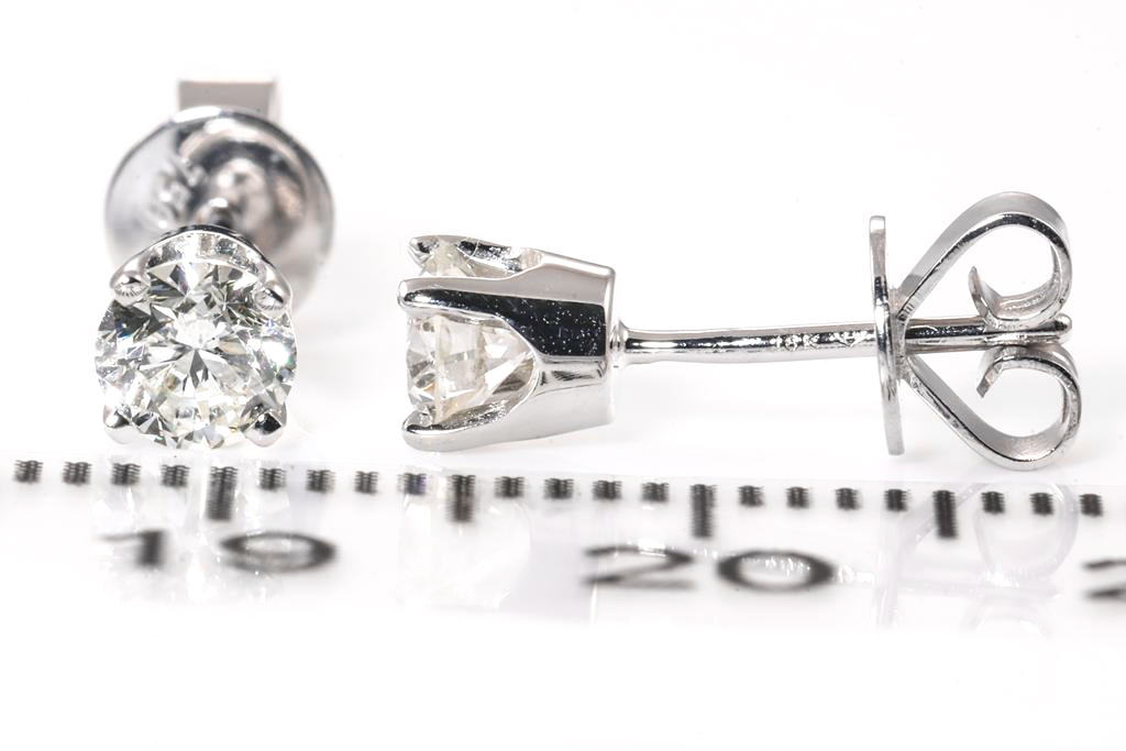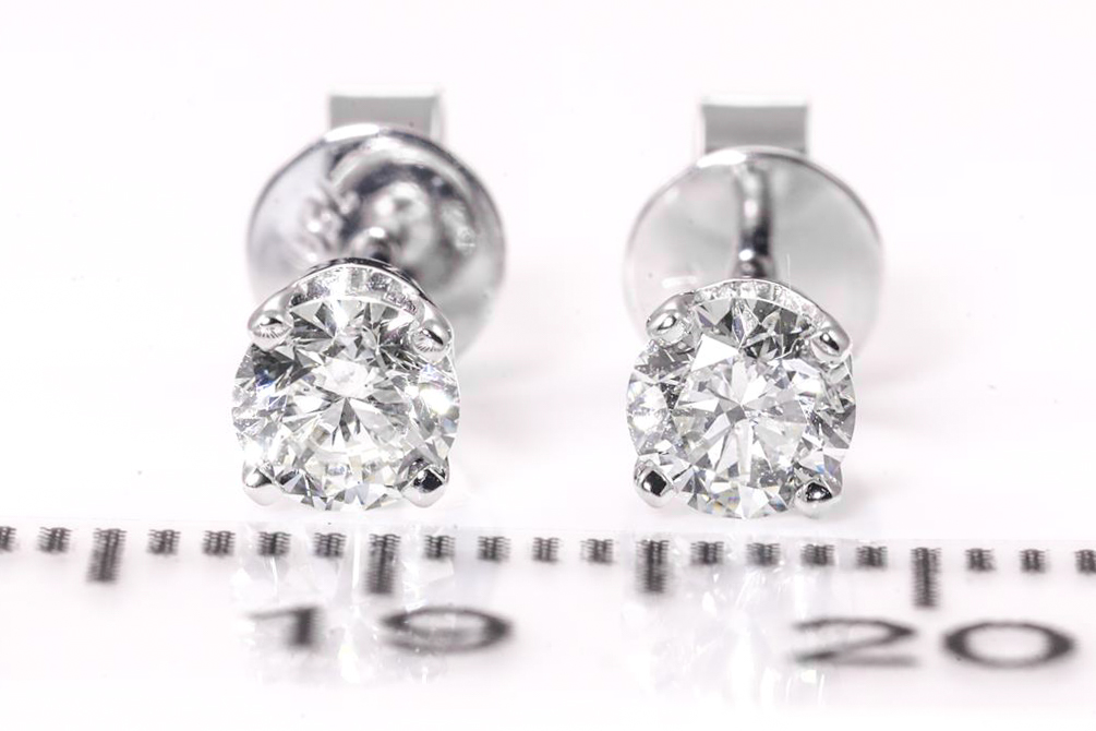 Diamond stud earrings with 2 round Diamonds totalling 0.60cts (Estimated grading: J SI-P1). 18ct white gold. Weight: 1.5g. (Pre-owned)