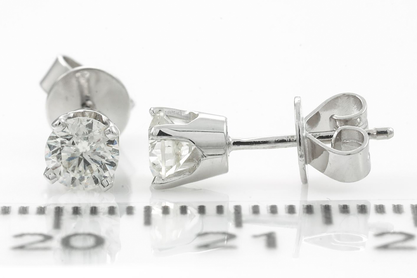 Diamond stud earrings with 2 round Diamonds totalling 0.60cts (Estimated grading: J SI). 18ct white gold. Weight: 1.3g. (Pre-owned)