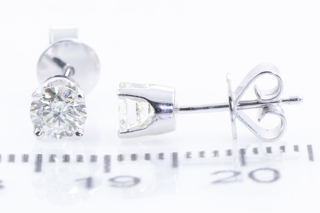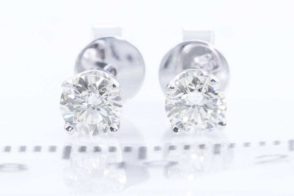 Diamond stud earrings with 2 round Diamonds totalling 0.60cts (Estimated grading: I-J SI). 18ct white gold. Weight: 1.5g. (Pre-owned)