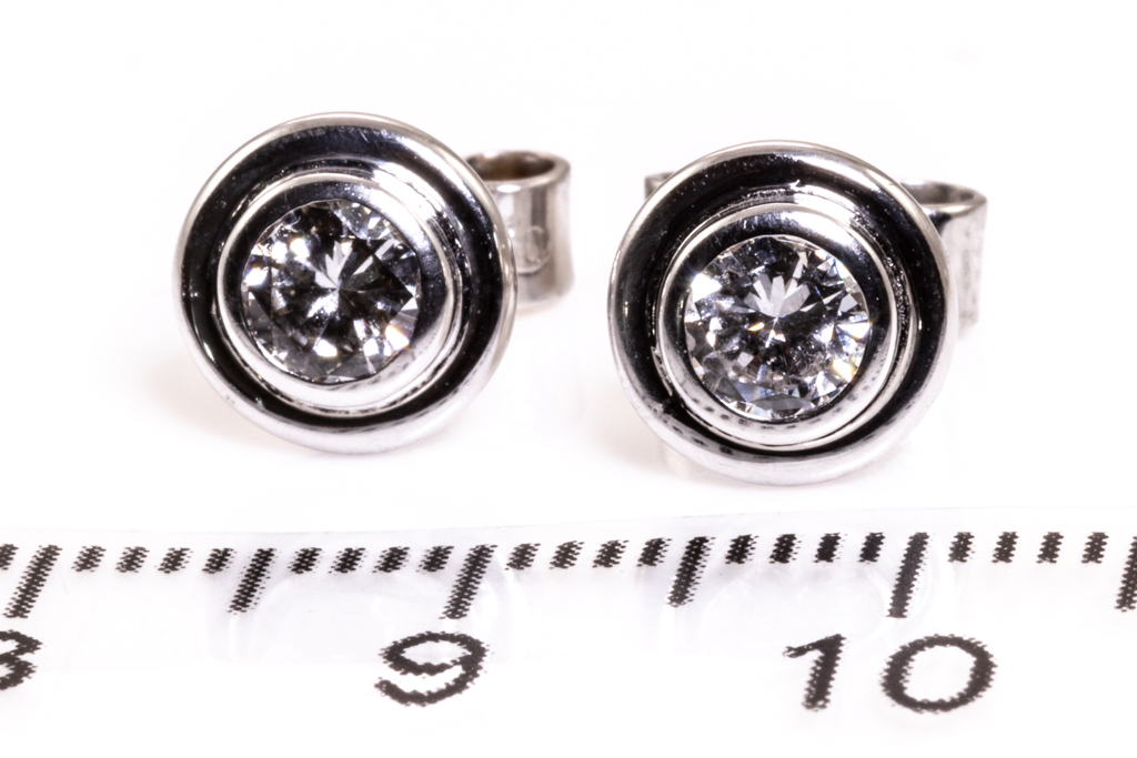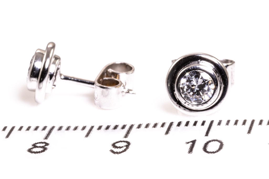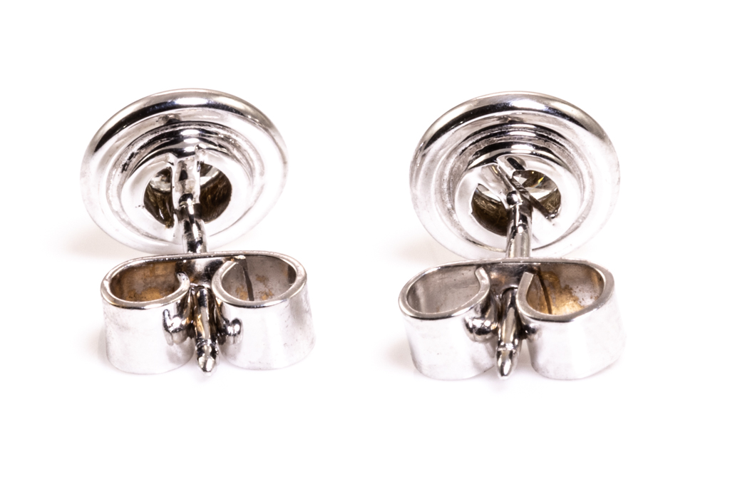 Diamond studs earrings with 2 round brilliant cut Diamonds totalling approximately 0.60cts (Estimated grading G SI). 18ct white gold. Weight 3.0g. (Pre-owned)
