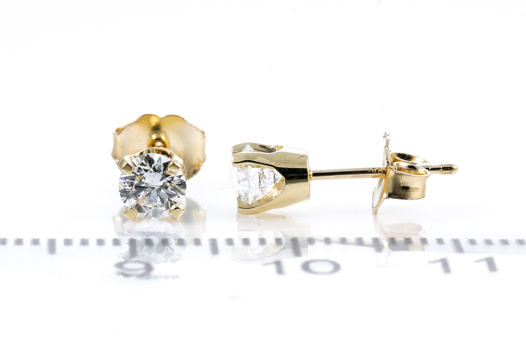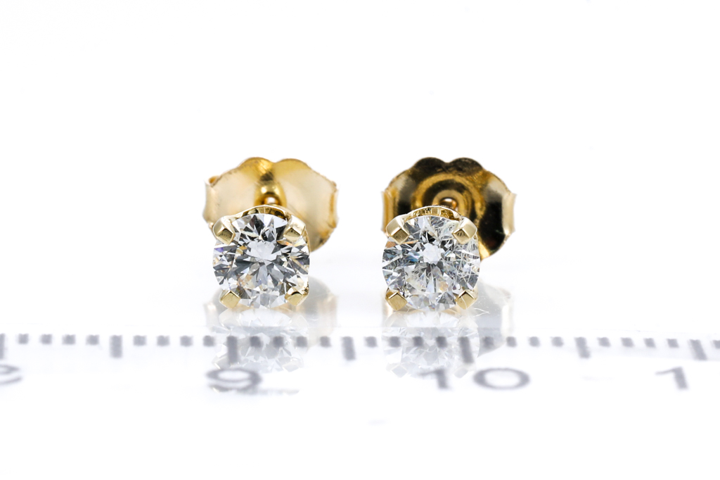 Diamond stud earrings with 2 round brilliant cut Diamonds totalling 0.60cts (both with GIA summary reports graded as D SI1 #6401732688, 7416425983). 18 ct yellow gold. Weight: 1.1g (New)