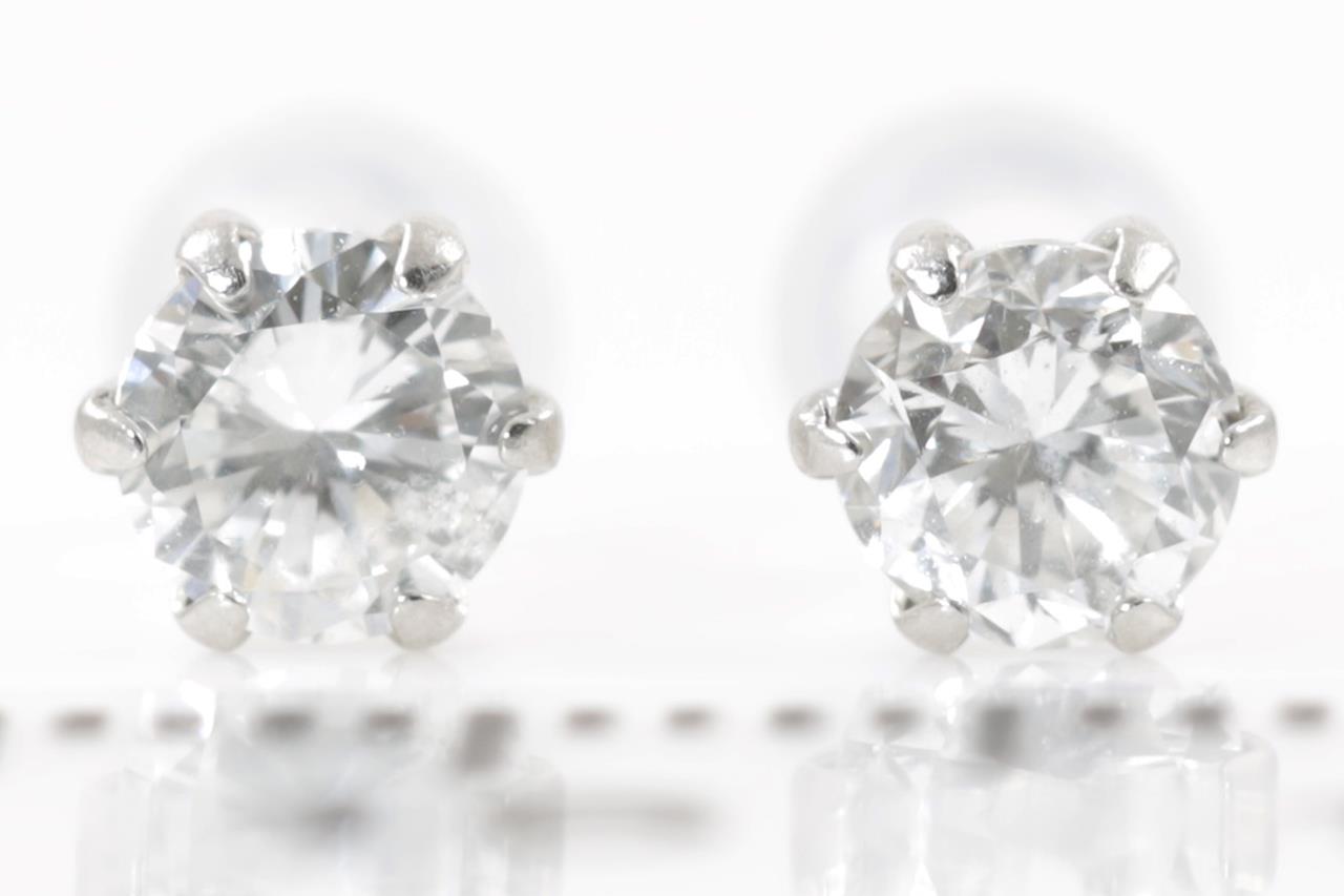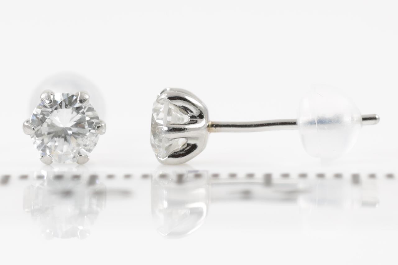 Diamond stud earrings with 2 round brilliant cut Diamonds totalling 0.60cts (Estimated grading: G SI). Platinum with silicon backs. Weight: 0.4g. (Pre-owned)