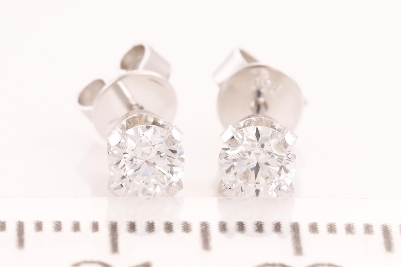Diamond Studs with 2 round brilliant cut Diamonds totalling 0.61cts (both with GIA summary reports graded as D VS1# 7416397298, 2414159669). 18ct white gold. 1.4g (New)