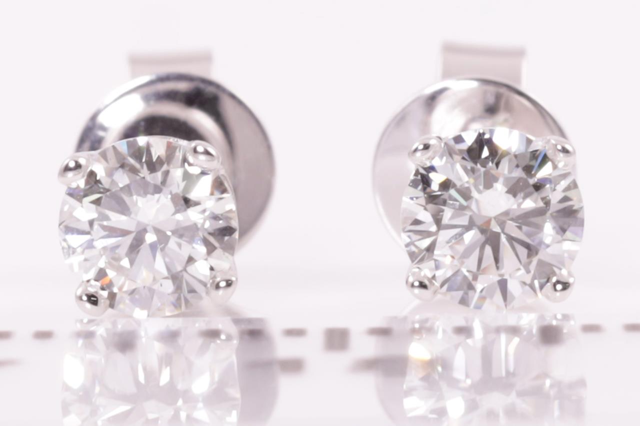 Diamond Stud Earrings with 2 round brilliant cut Diamonds totalling 0.61cts (both with GIA summary reports graded as F Internally Flawless #6371132149, 1377670269). 18ct white gold. Weight: 1.3g (New)