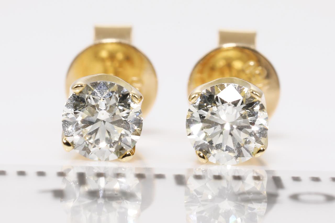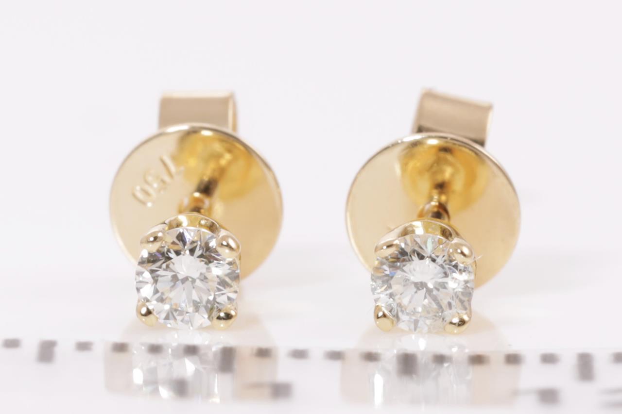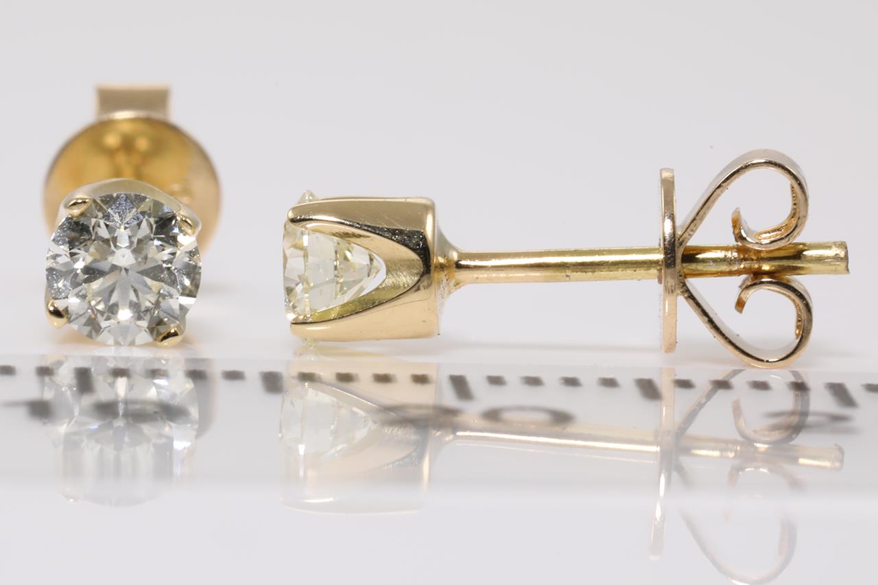 Diamond stud earrings with 2 round Diamonds totalling 0.61cts (Estimated grading: J VS). 18ct yellow gold. Weight: 1.4g. (New)