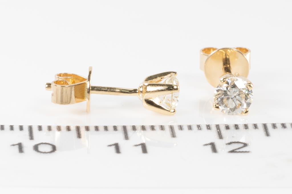 Diamond stud earrings with 2 round Diamonds totalling 0.61cts (Estimated grading: K-L VS-SI2). 18ct yellow gold. Weight: 1.2g. (Pre-owned)