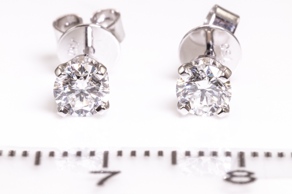 Diamond stud earrings with 2 round brilliant cut Diamonds totalling 0.61cts (both with GIA summary reports graded as F Internally Flawless #6392649536, 1408245113) 18ct white gold. Weight: 1.3g (New).