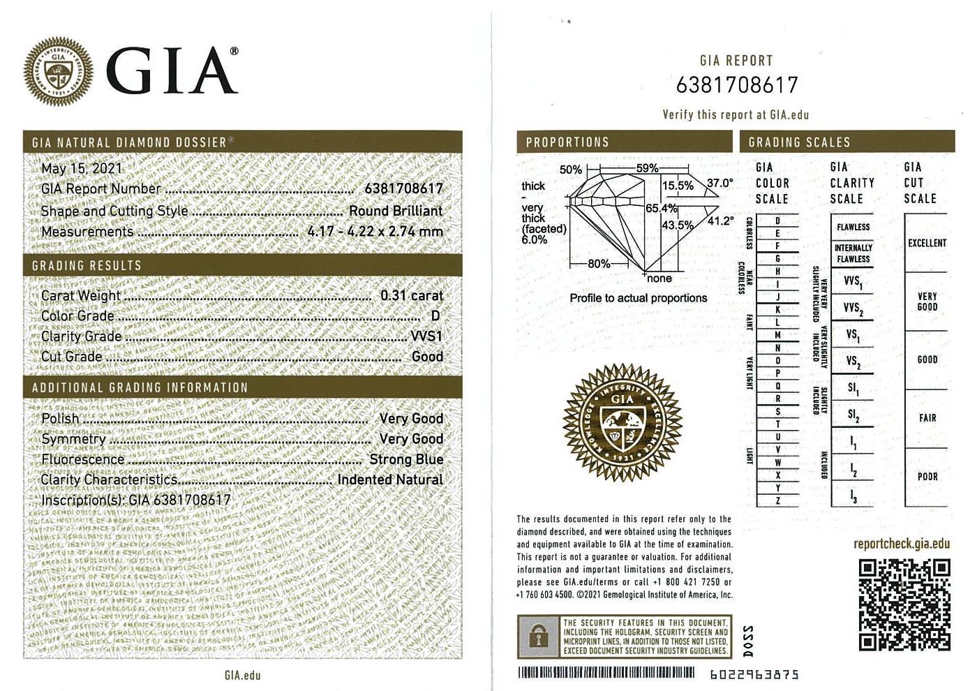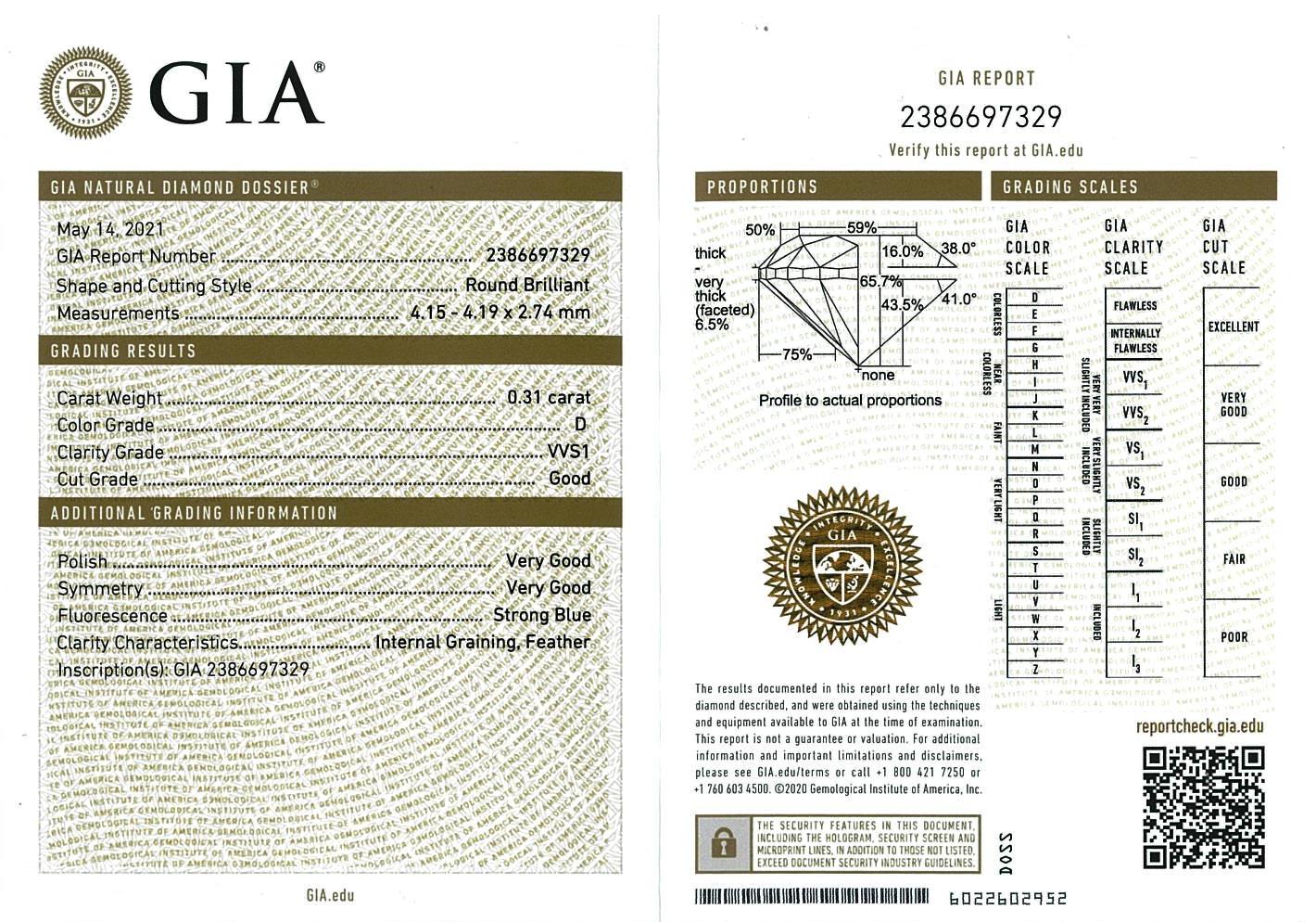 A loose pair Round Brilliant Cut Diamonds totalling 0.62cts (with GIA report both graded as D VVS1 #6381708617, 2386697329). (New)