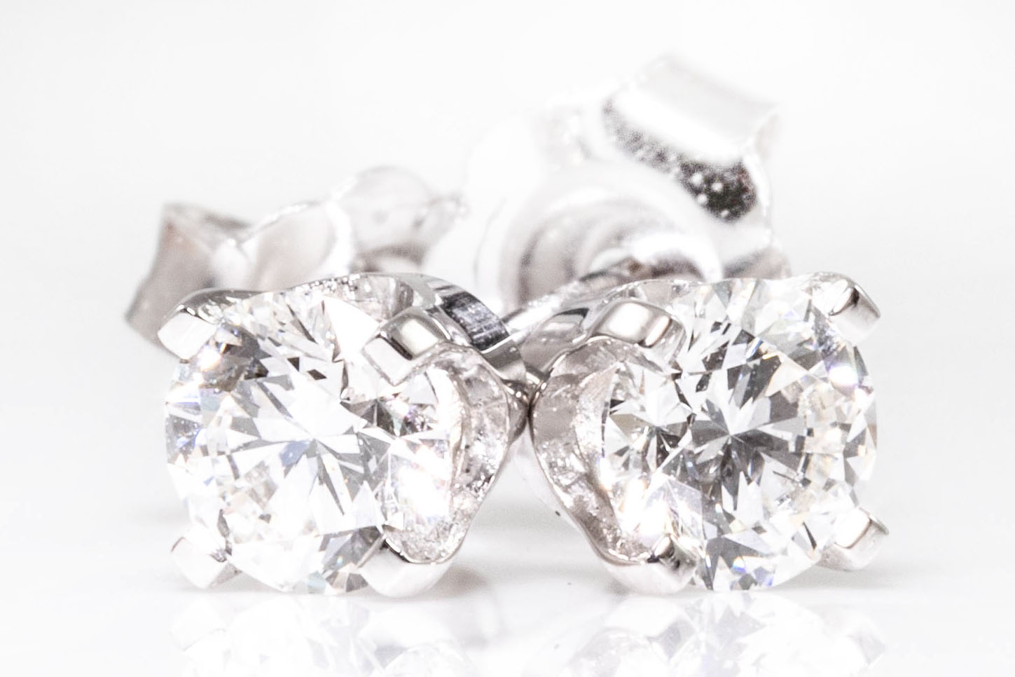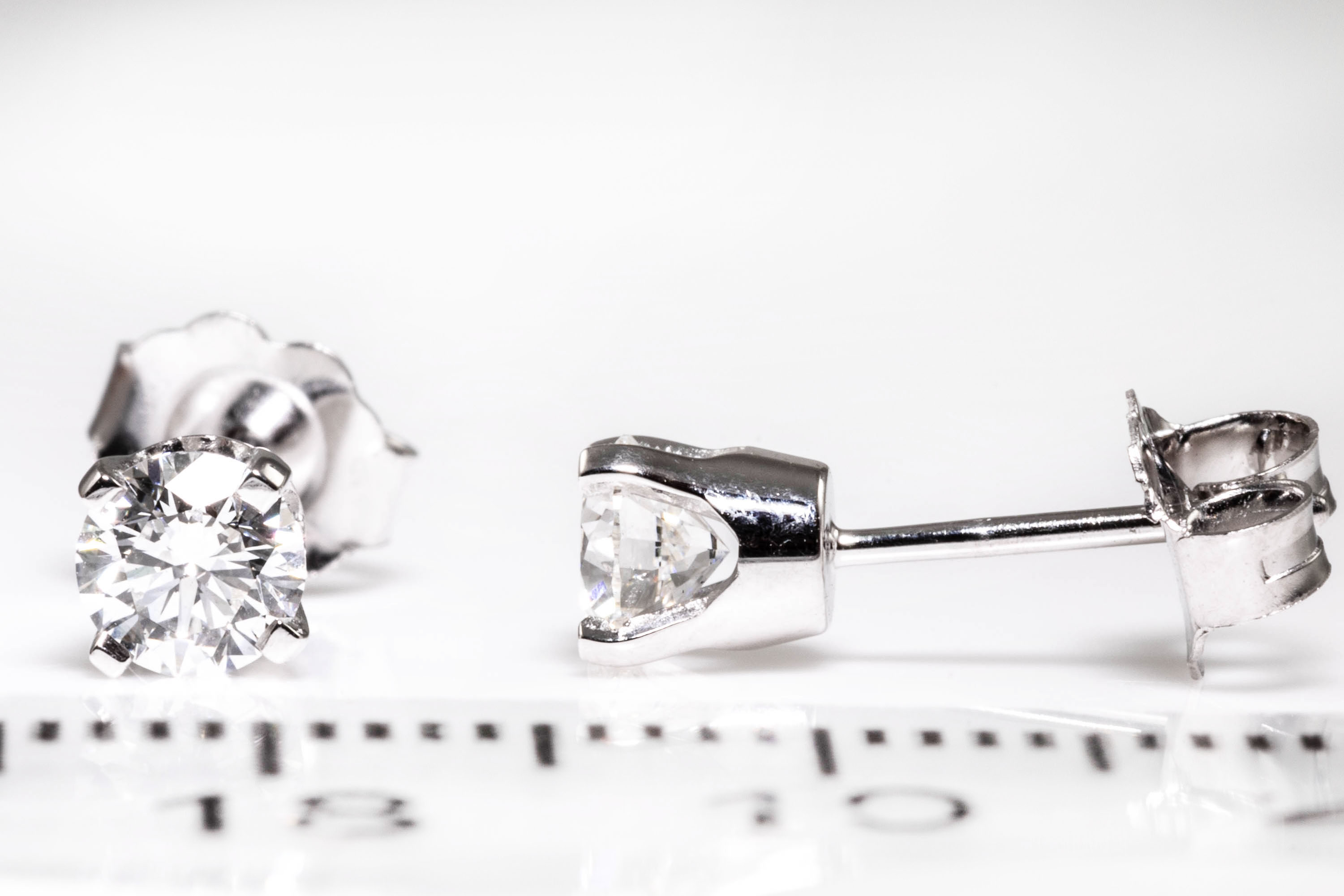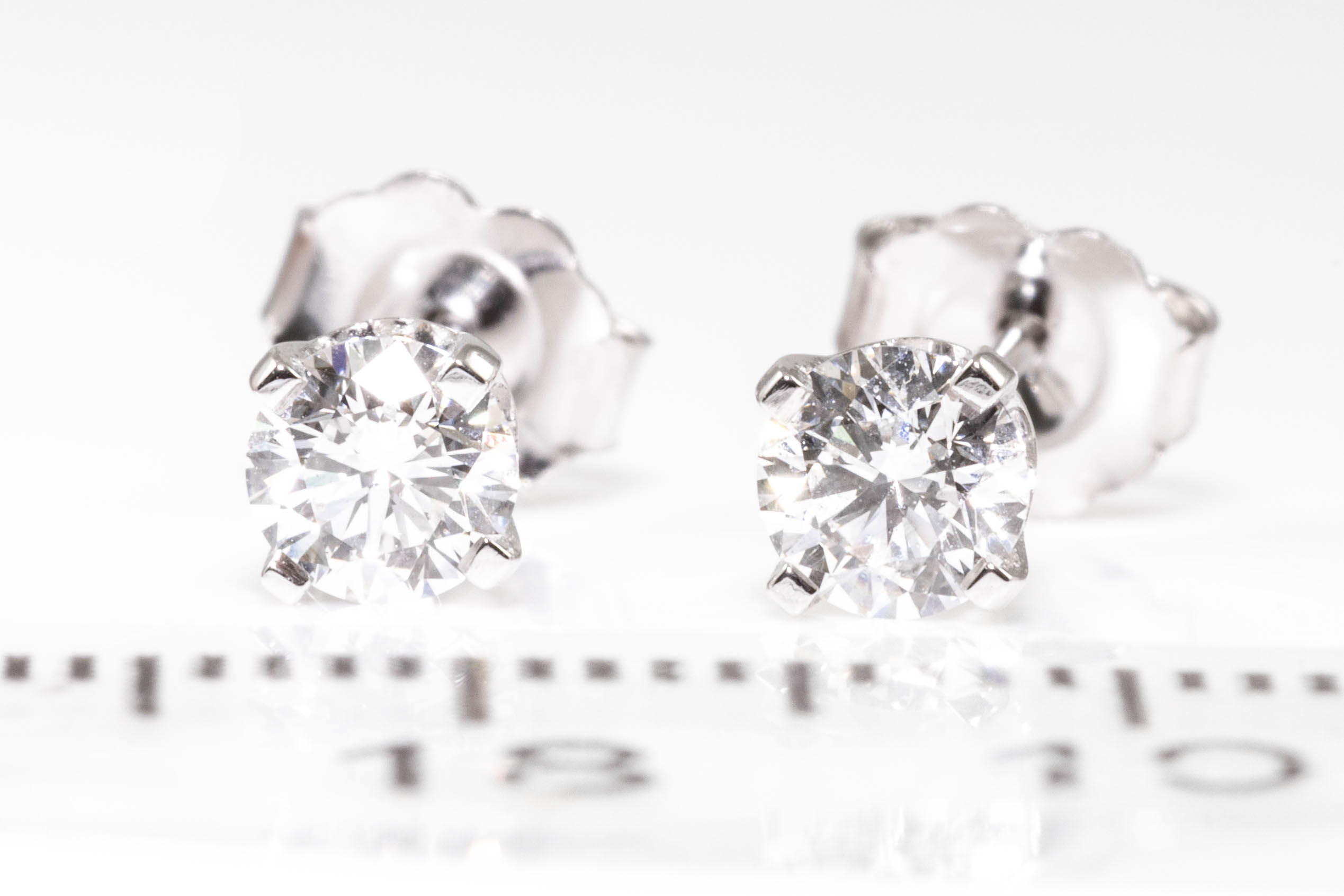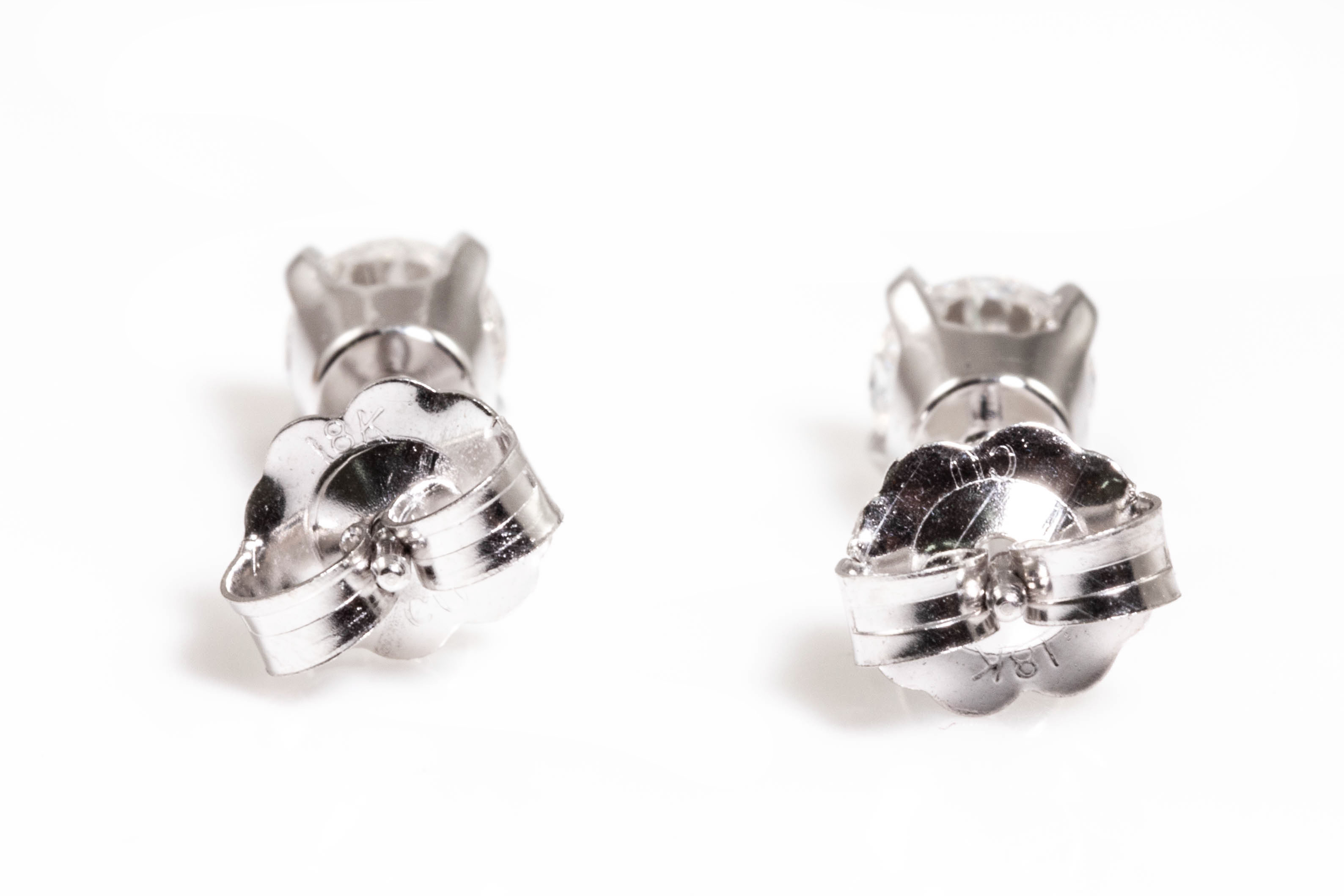 Diamond stud earrings with 2 round brilliant cut Diamonds totalling 0.63cts (both with GIA summary reports graded as E IF #2417277903, 6411923780). 18ct white gold. Weight: 1.1g. (New)