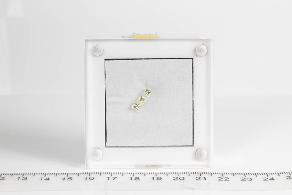 A loose parcel of 3 princess cut diamonds totalling 0.65cts (Estimated grading: Natural Light Yellow VS-SI). (New)