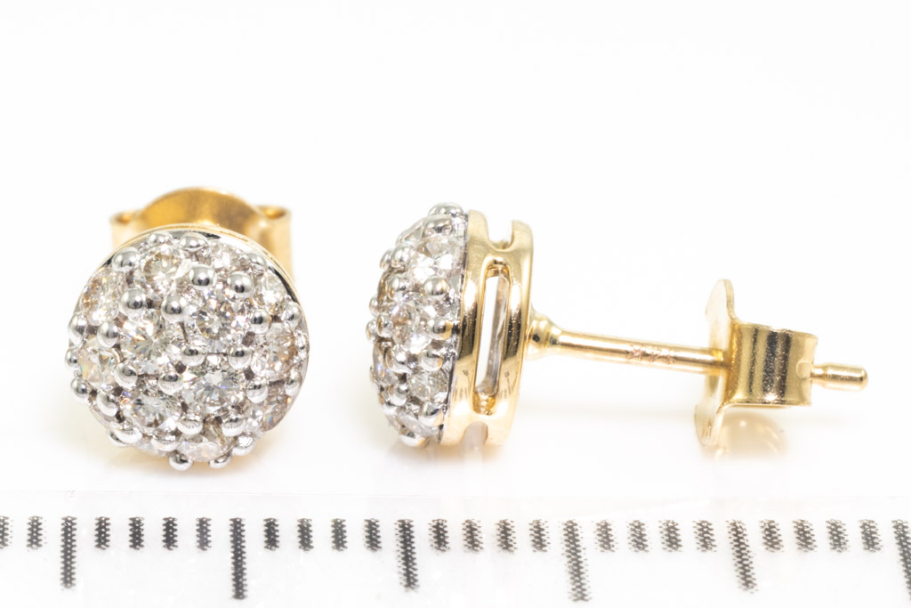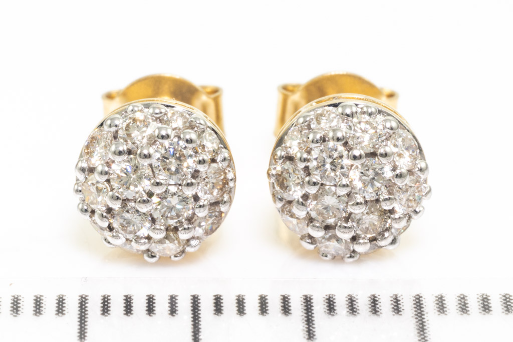 Diamond earrings with 28 round diamonds totalling 0.66cts. (Estimated grading: I SI). 14ct yellow gold. Weight: 2.3g. (New)