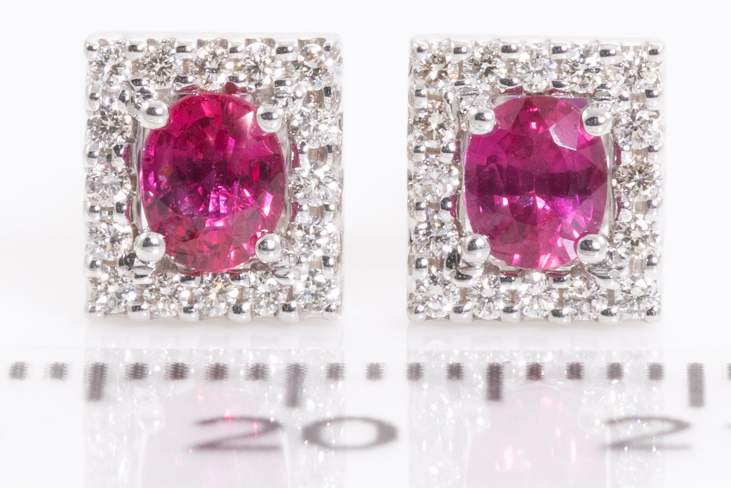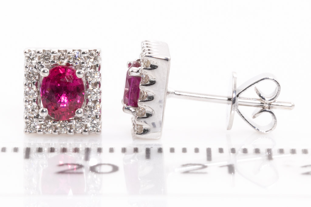 Ruby and Diamond earrings oval shape Rubies totalling 0.66cts and round Diamonds totalling 0.21cts. 18ct white gold. Weight: 2.6g. (New)