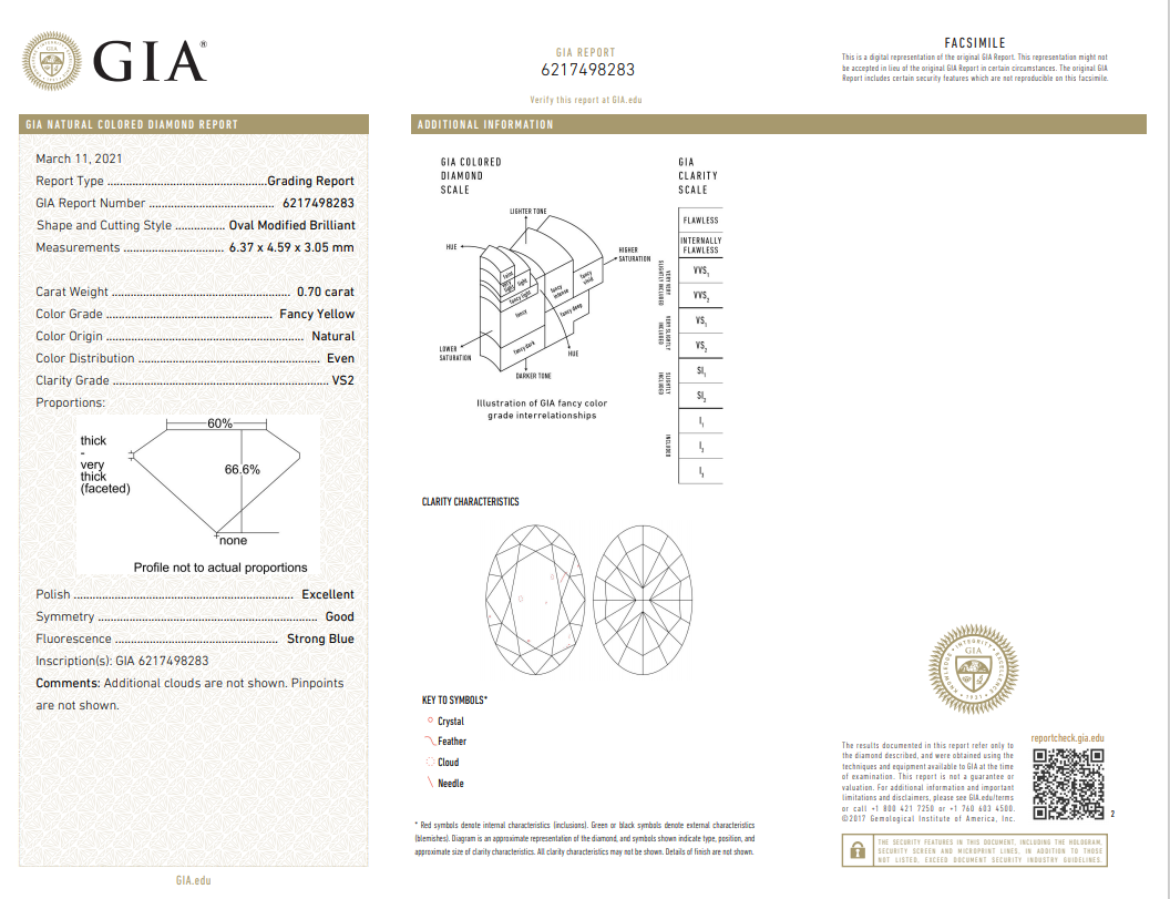 A loose Oval shape Diamond of 0.70ct (with GIA report graded as Natural Fancy Yellow Even VS2 #6217498283). (New)
