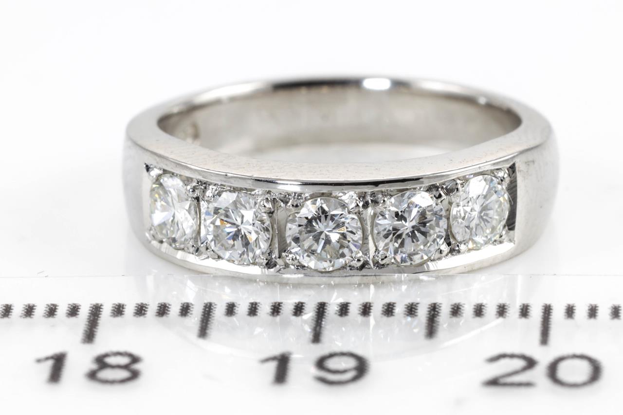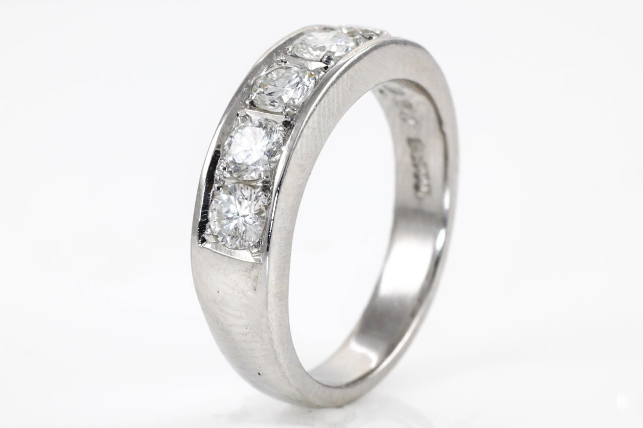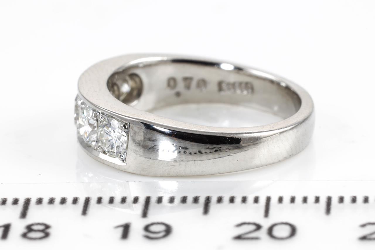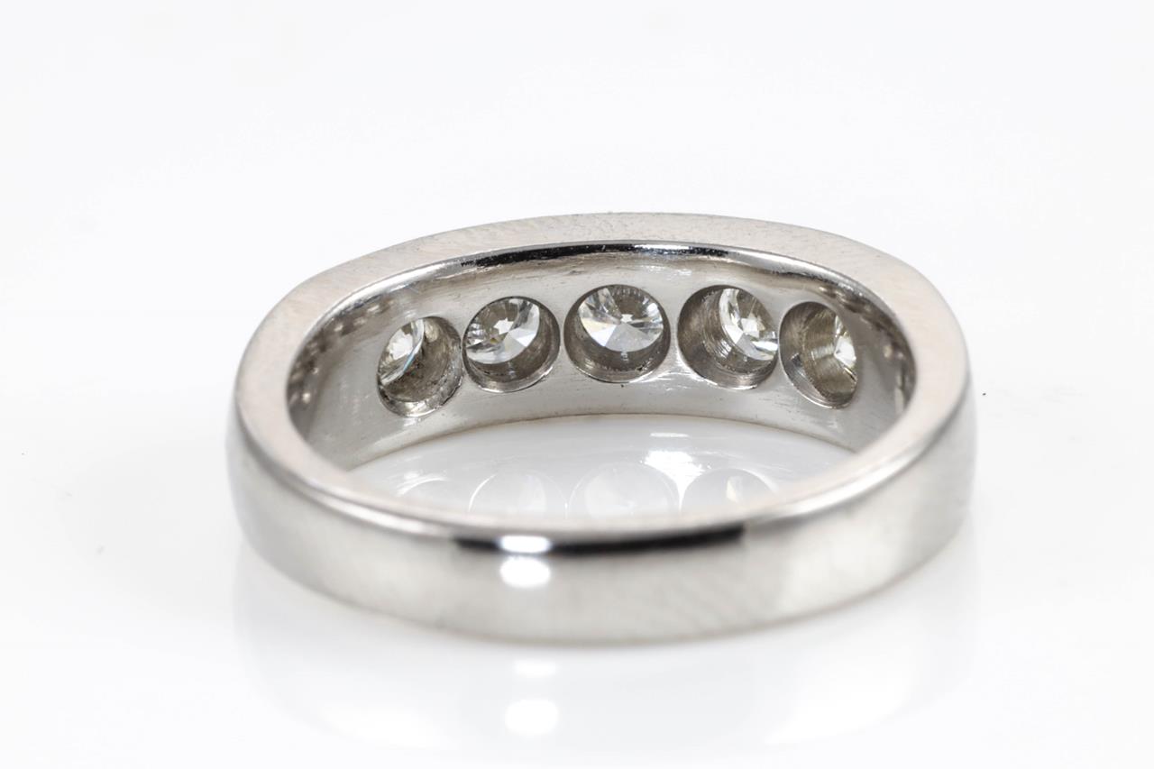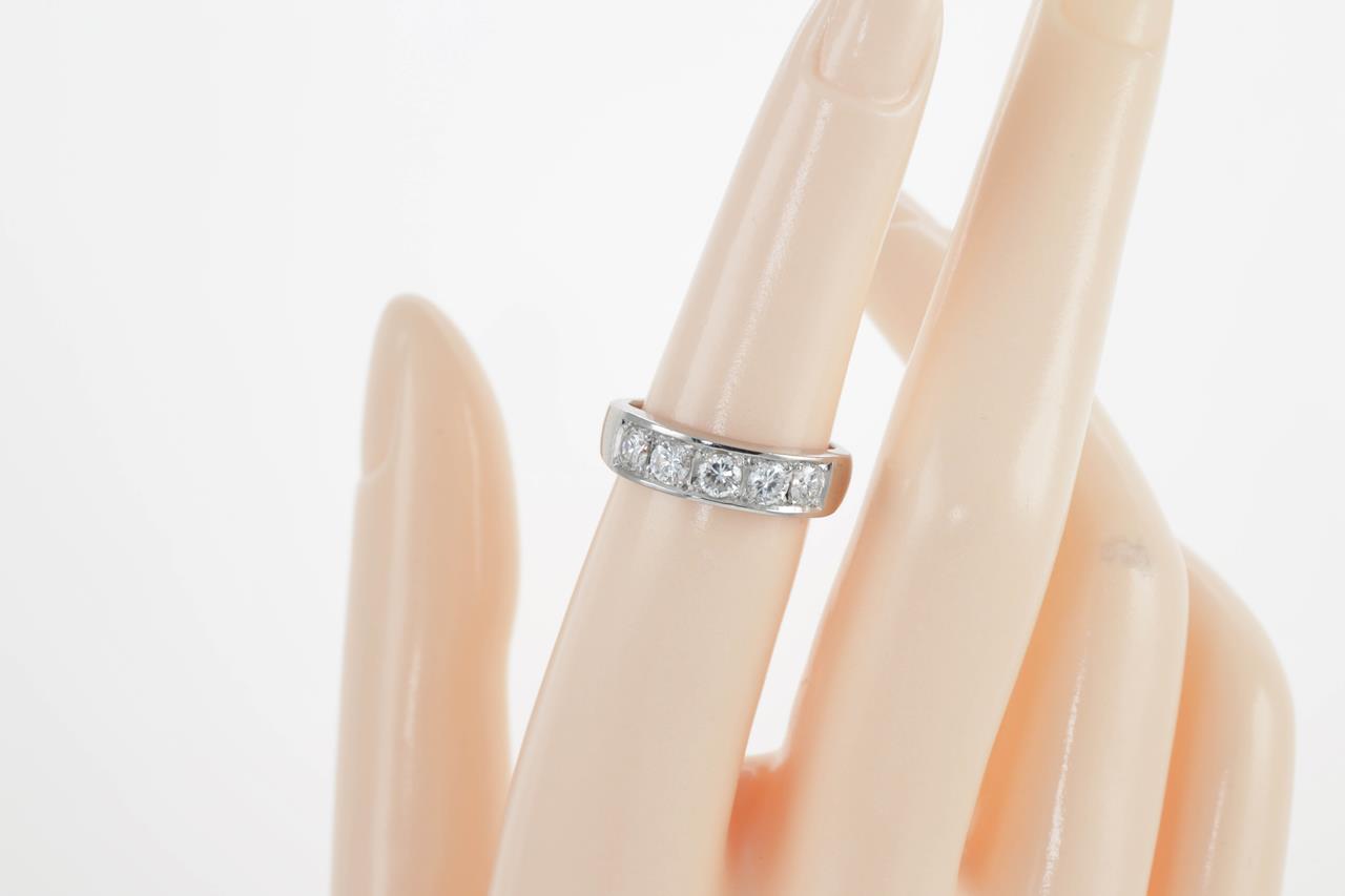 Diamond ring with 5 round Diamonds totalling 0.70cts (Estimated grading: H-I VS). Platinum. Ring size L. Weight: 7.6g. (Pre-owned)